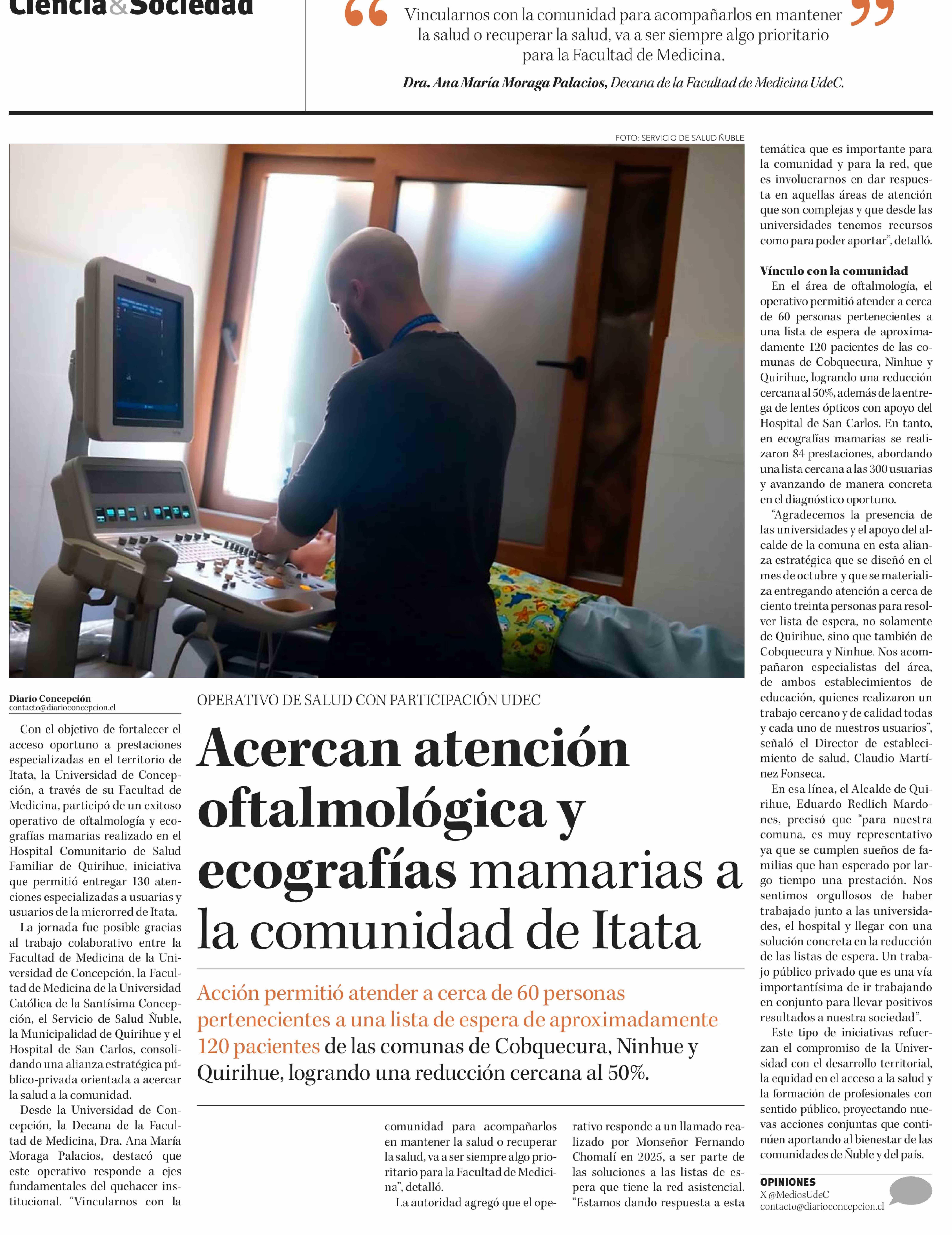 Acercan atención oftalmológica y ecografías mamarias a la comunidad de Itata 11-02-2026 Diario Concepción |
