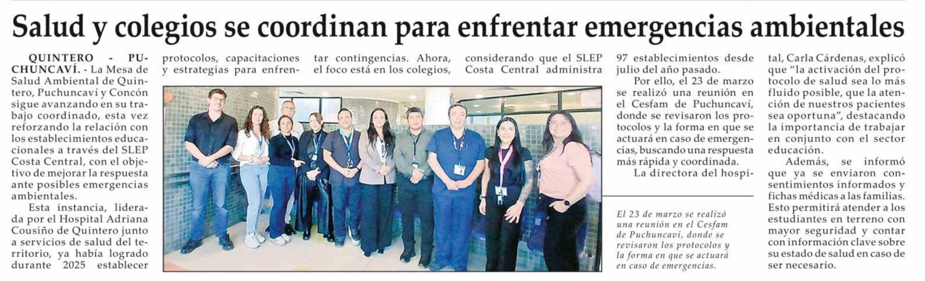 Salud y colegios se coordinan para enfrentar emergencias ambientales 27-03-2026 El Observador |