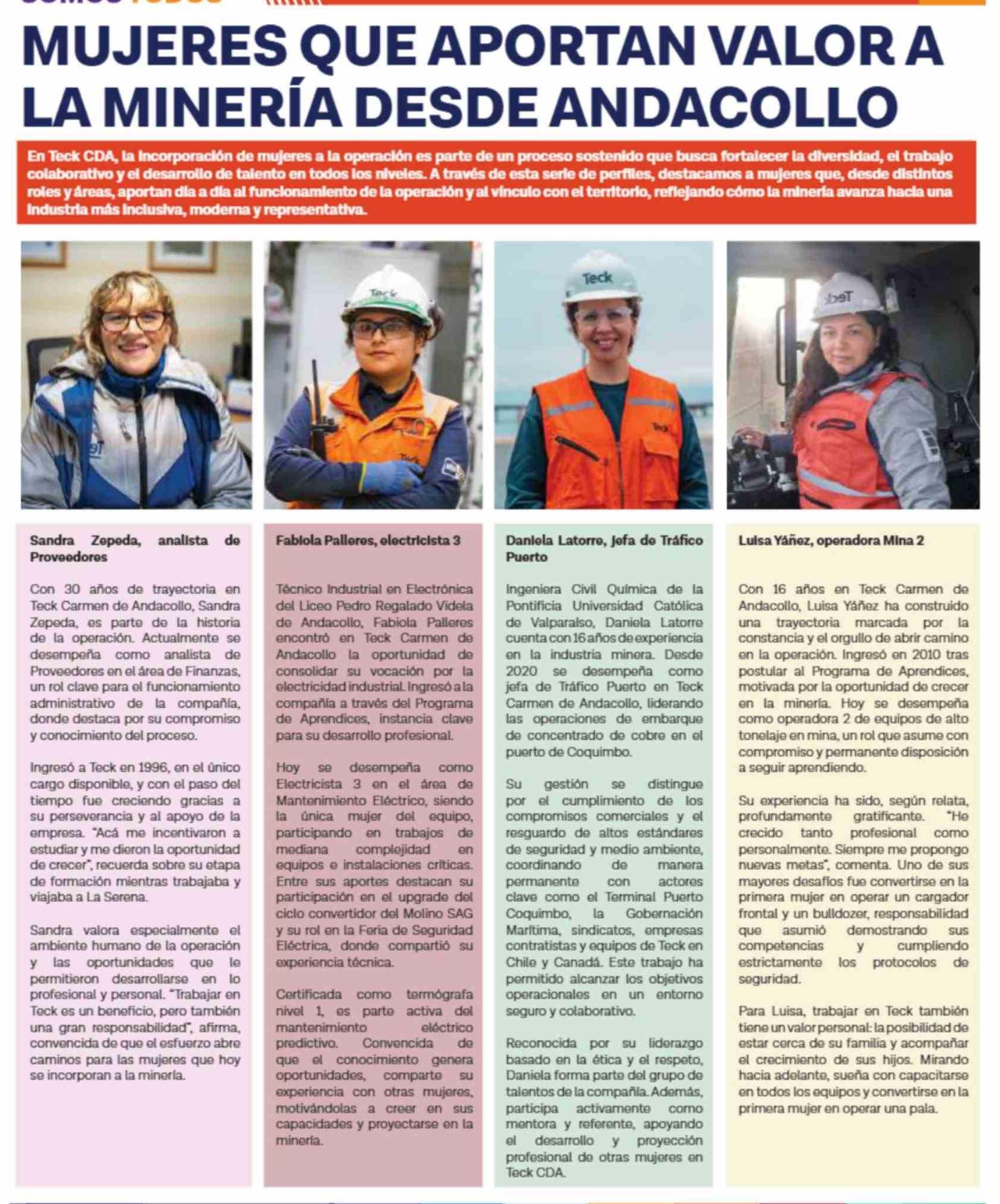 MUJERES QUE APORTAN VALOR ALA MINERÍA DESDE ANDACOLLO 06-03-2026 Semanario Tiempo |