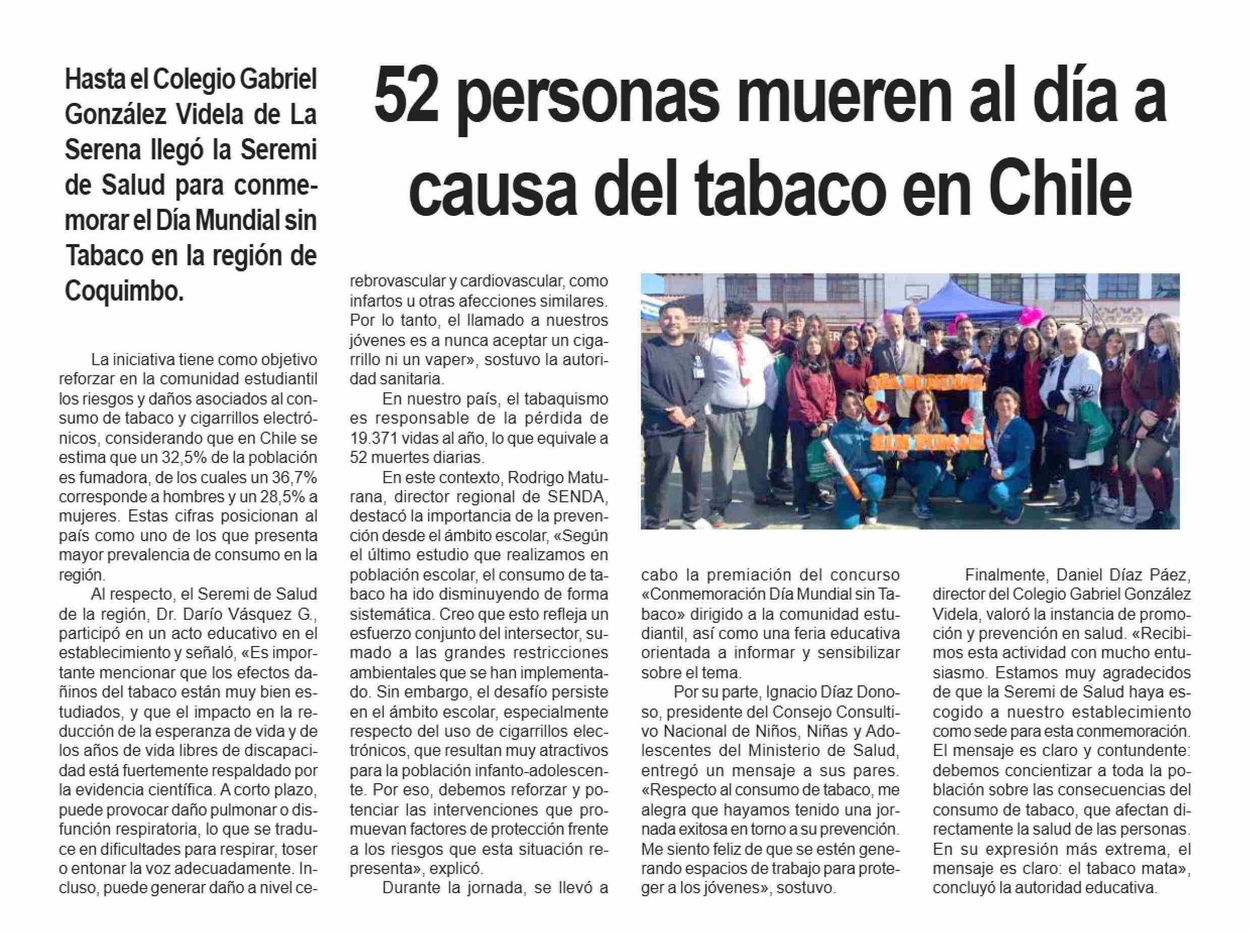 52 personas mueren al día a causa del tabaco en Chile 01-06-2025 Diario la Región |