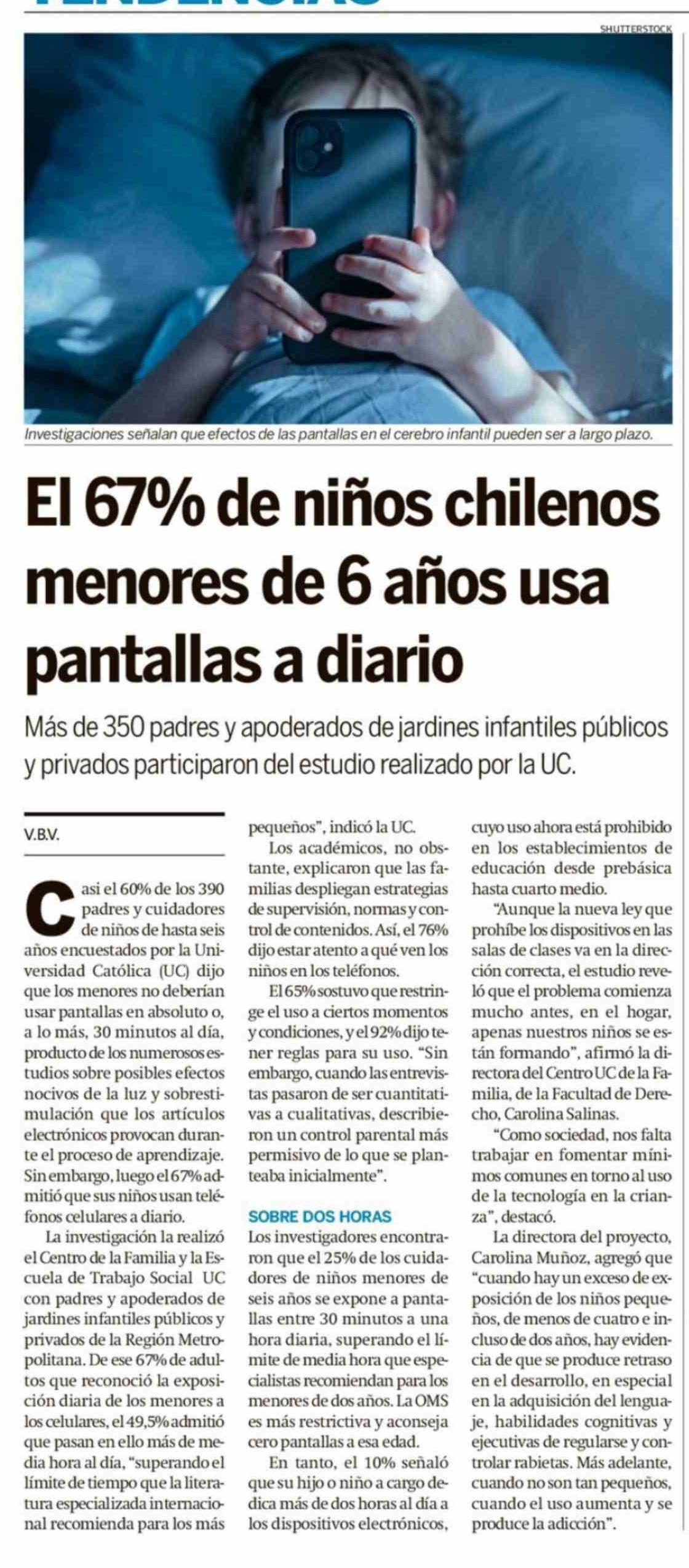 | Título: | El 67% de niños chilenos menores de 6 años usa pantallas a diario |