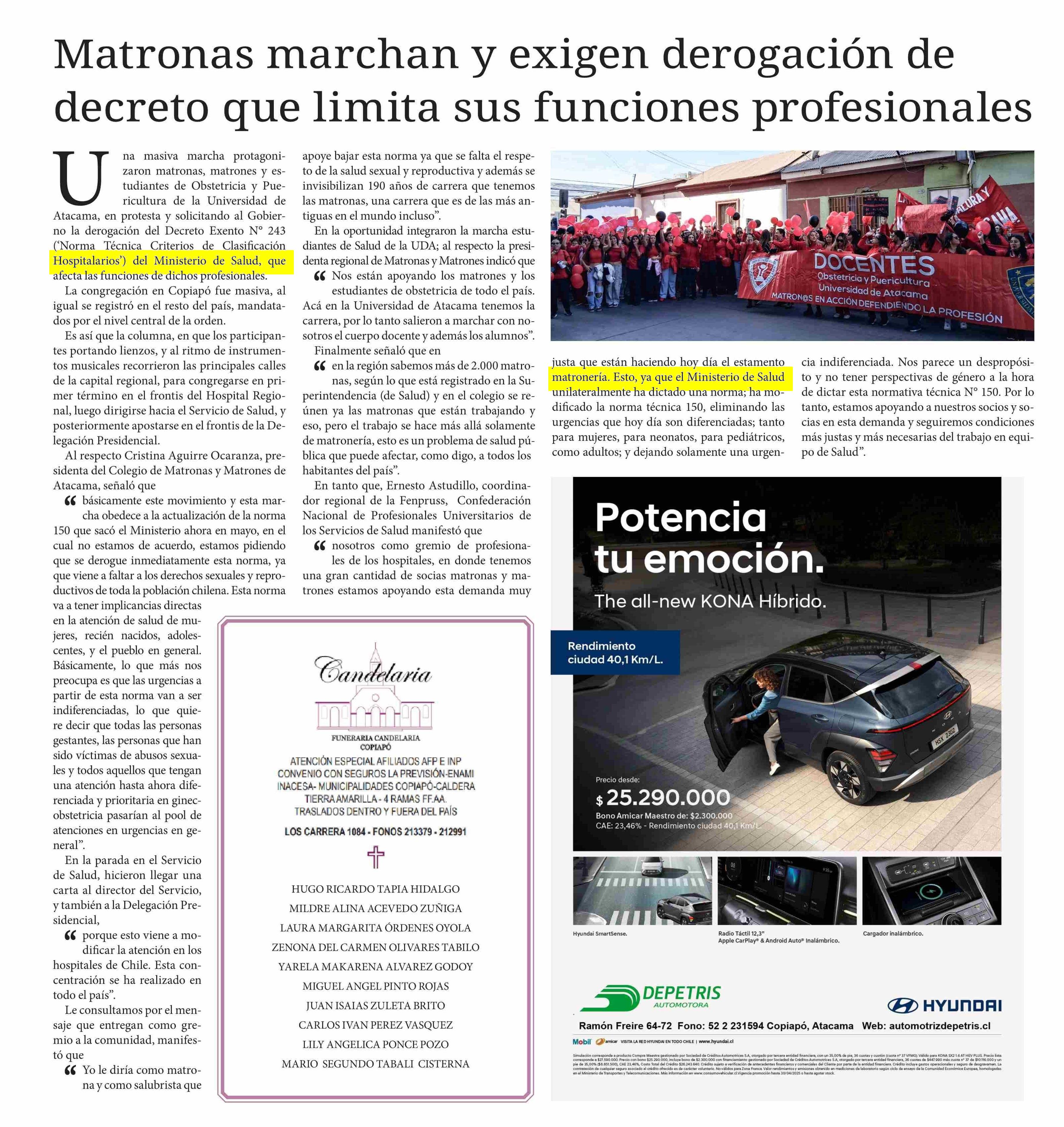 Matronas marchan y exigen derogación de decreto que limita sus funciones profesionales 24-05-2025 Diario Chañarcillo |