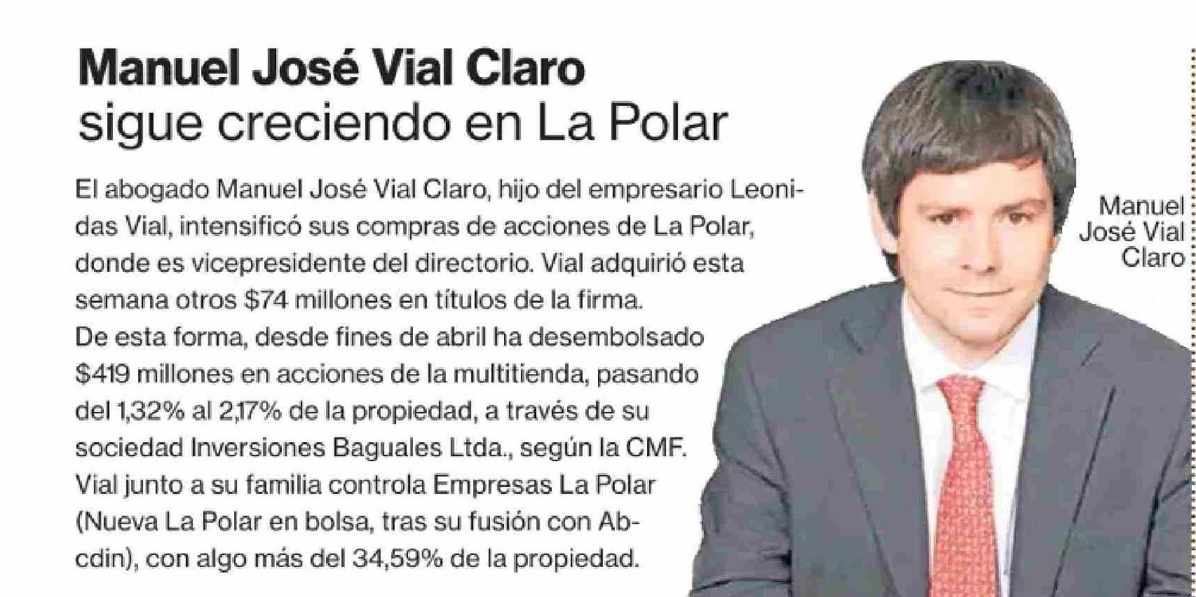 Manuel José Vial Claro sigue creciendo en La Polar 13-06-2024 La Segunda |