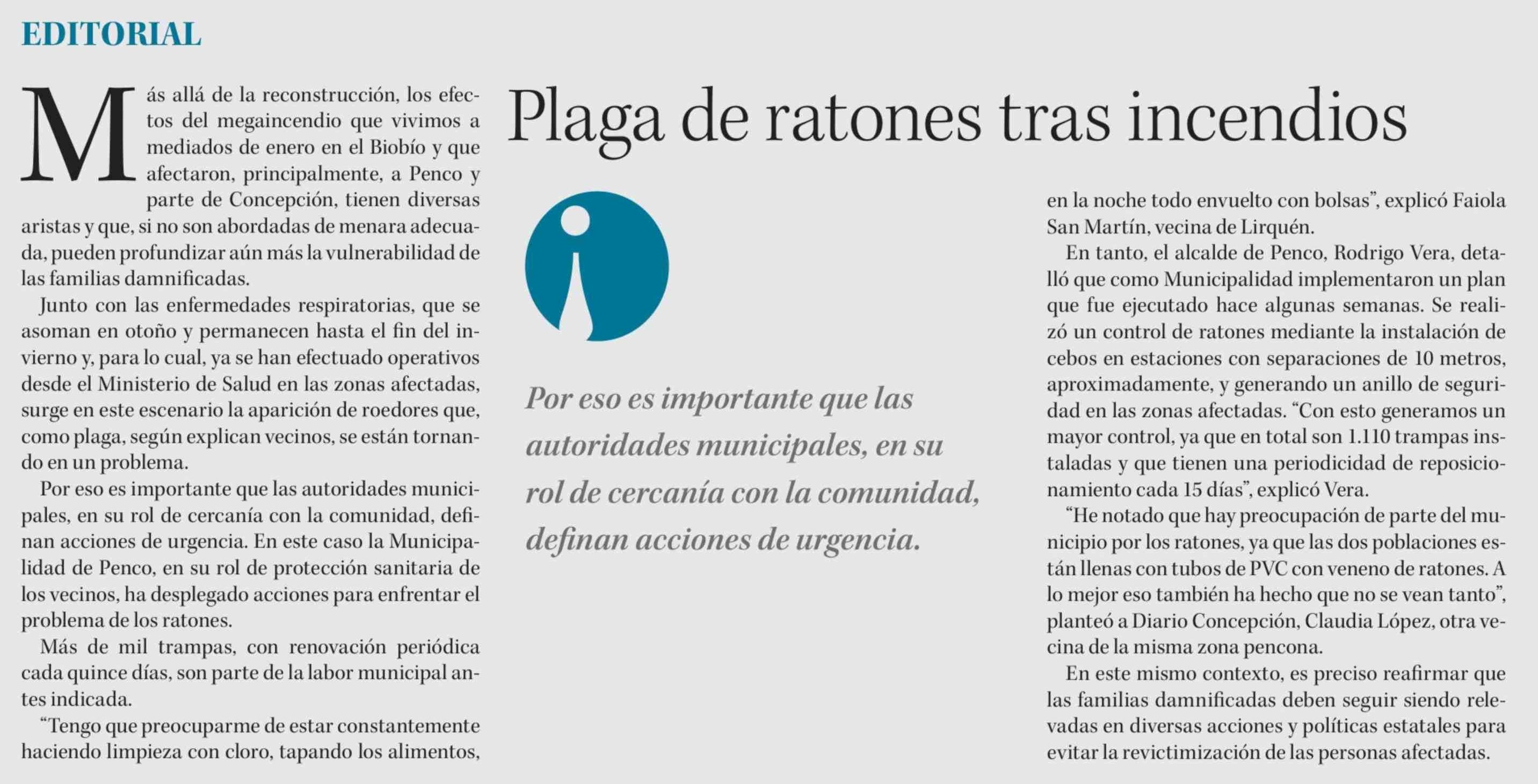 Editorial: Plaga de ratones tras incendios 11-04-2026 Diario Concepción |