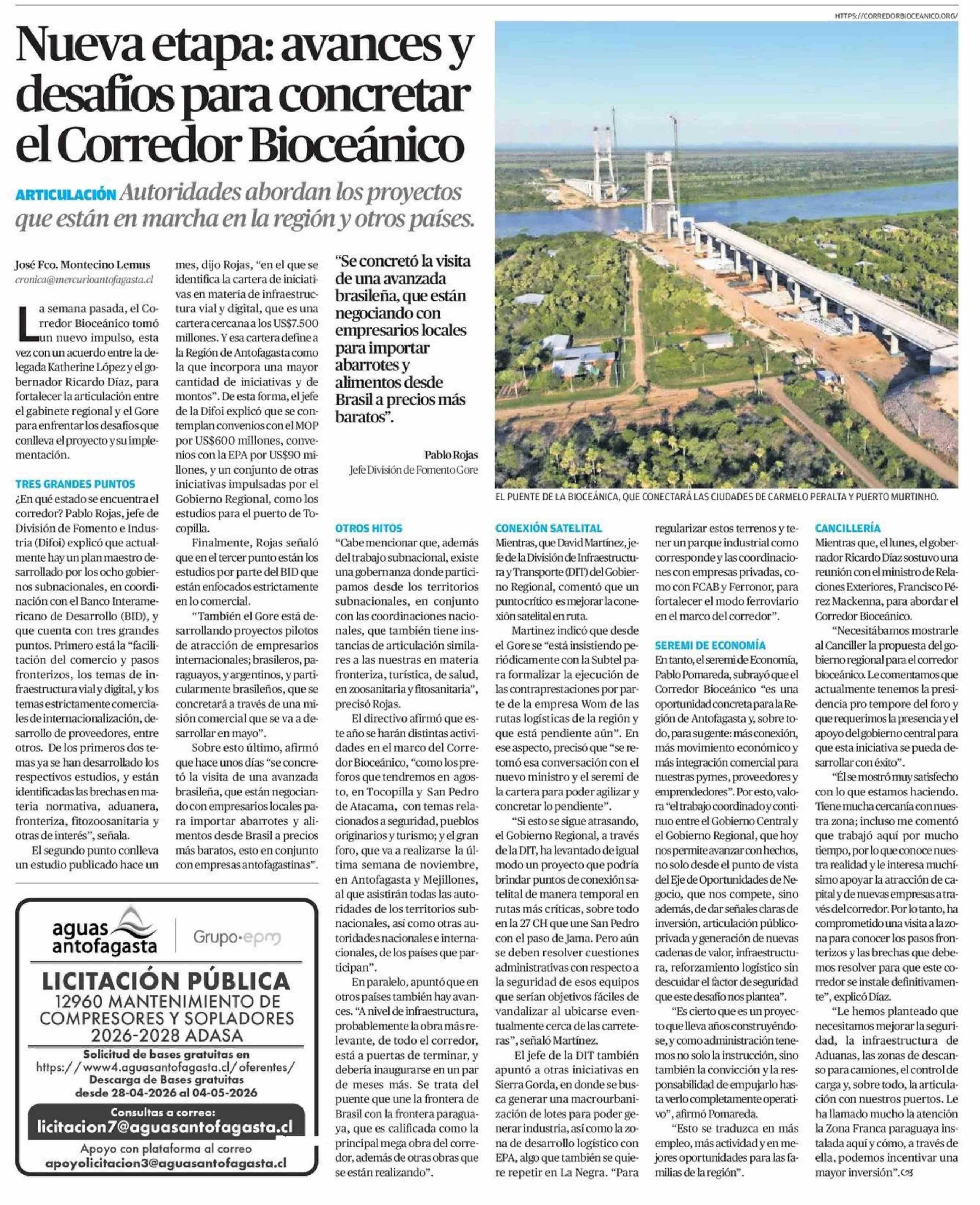Título: Nueva etapa: avances y desafios para concretar el Corredor Bioceánico