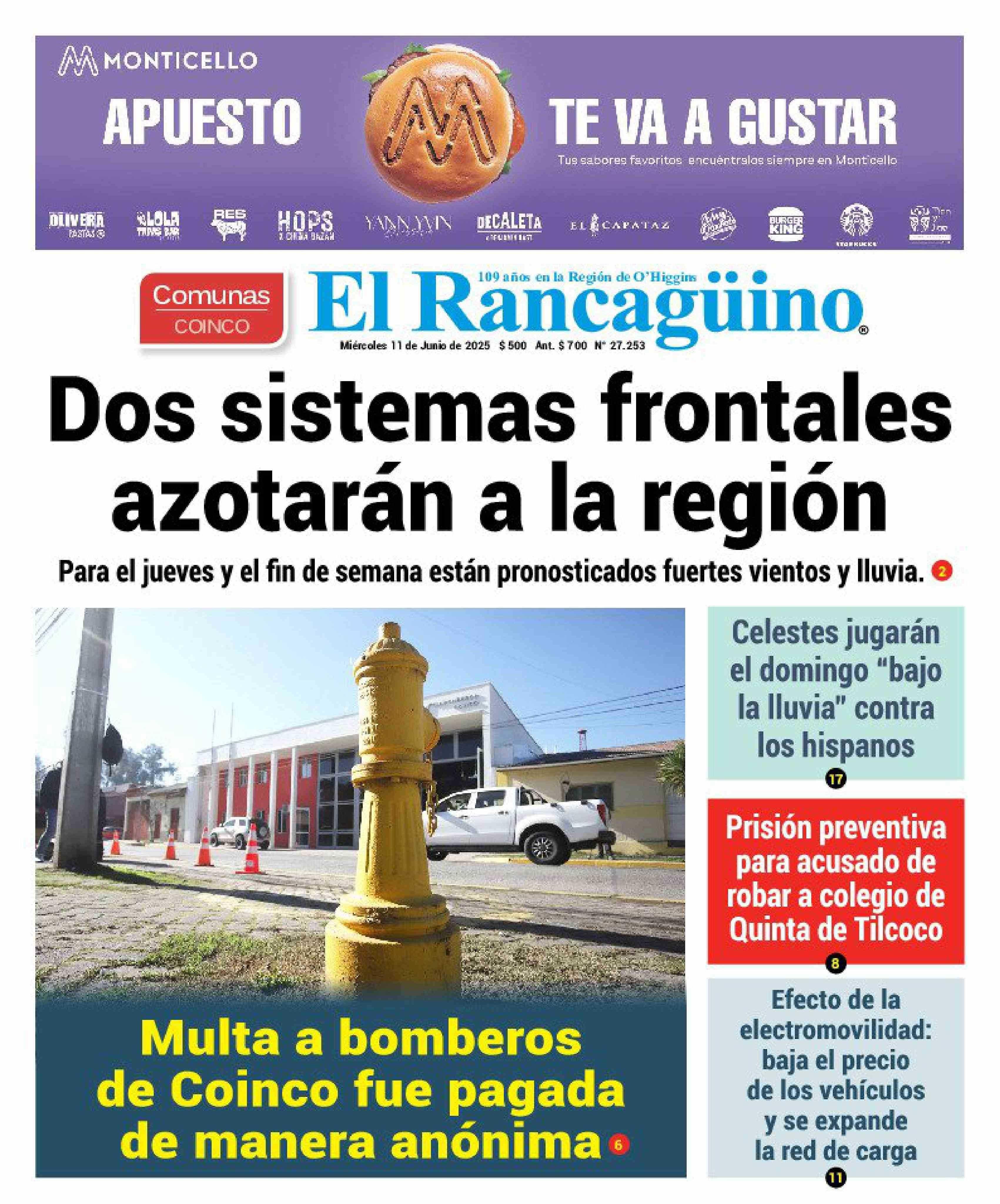 PORTADA EL RANCAGÜINO - CHILE 11-06-2025 El Rancagüino |