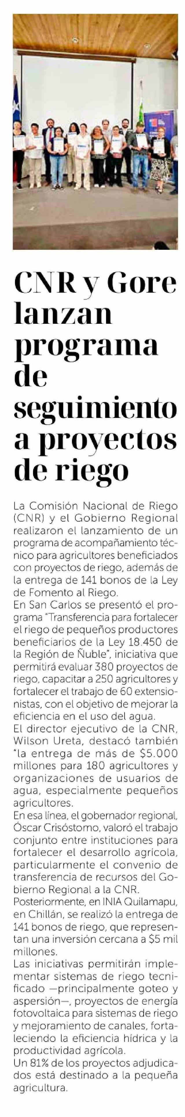 CNR y Gore lanzan programa de seguimiento a proyectos de riego 11-03-2026 La Discusión |