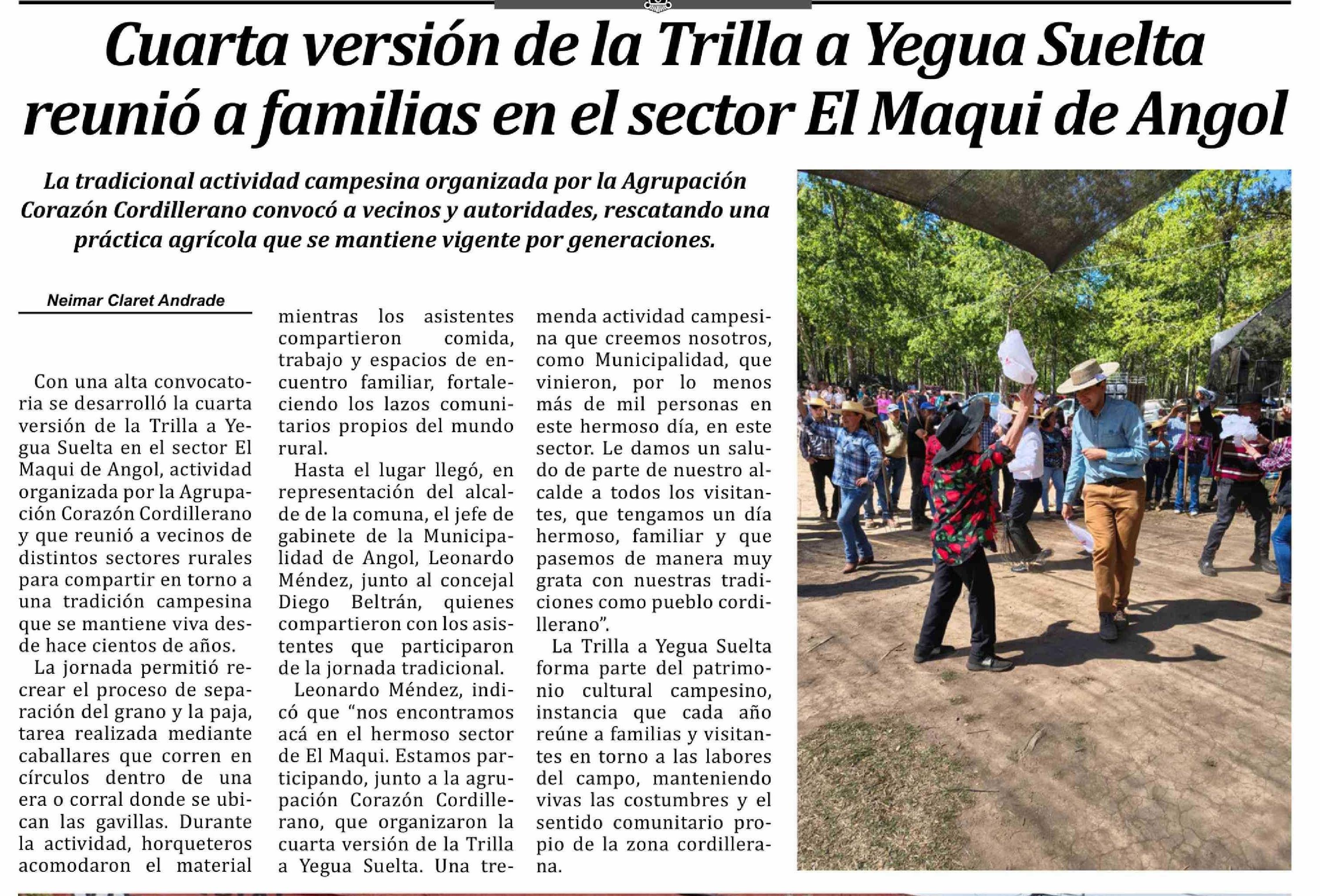 Cuarta versión de la Trilla a Yegua Suelta reunió a familias en el sector El Maqui de Angol 24-02-2026 Las Noticias |