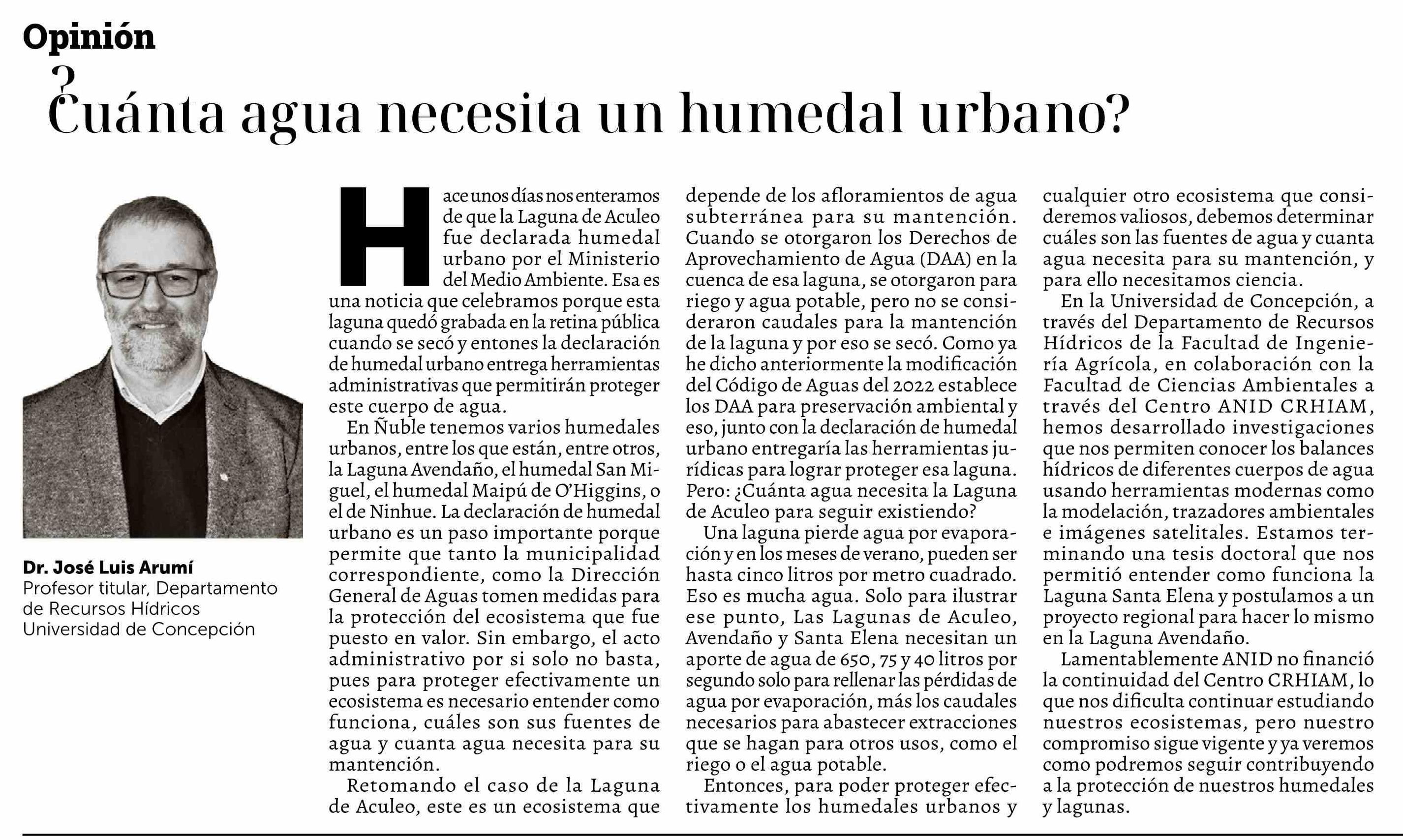 Título: Columnas de Opinión: ¿Cuánta agua necesita un humedal urbano?