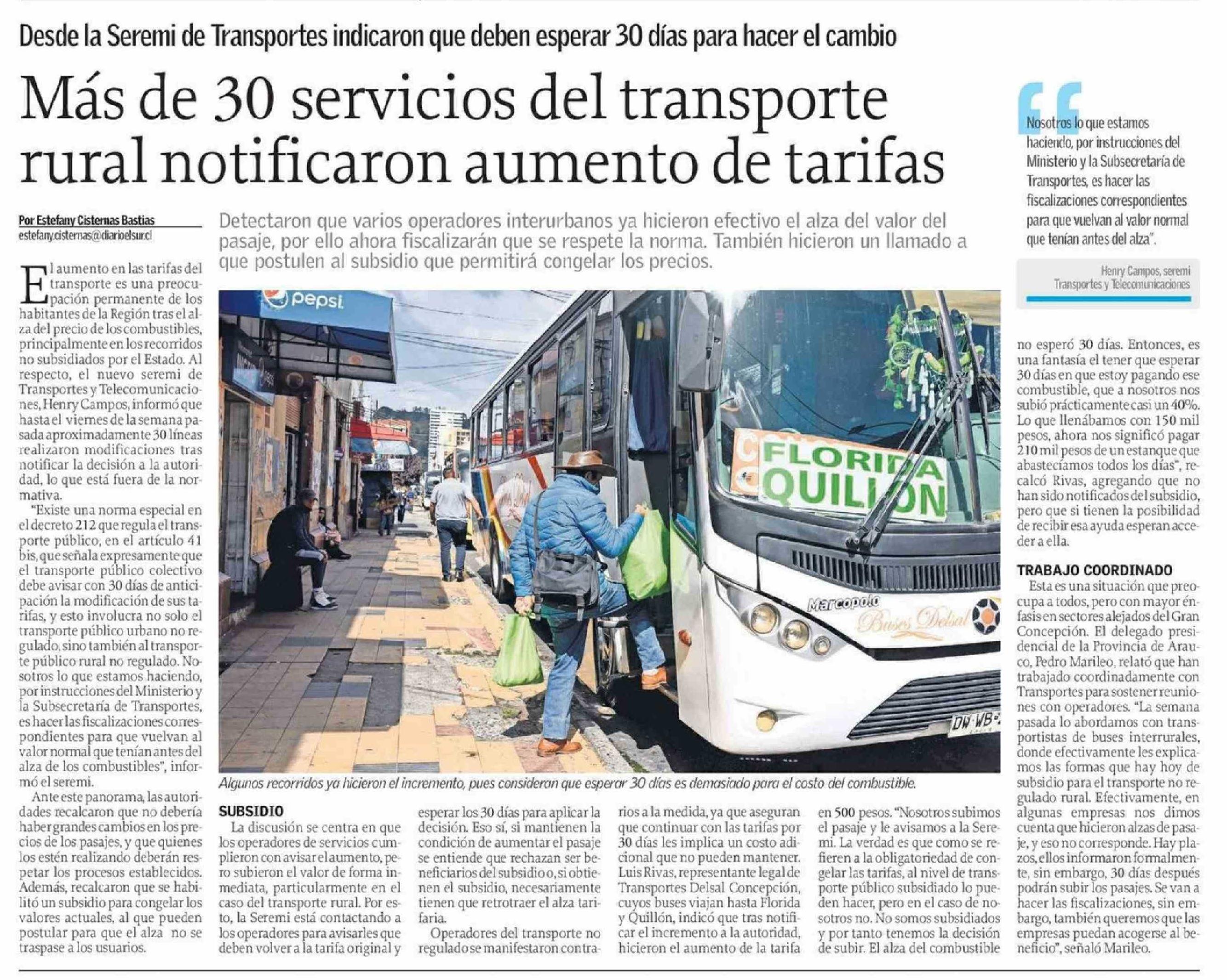 Más de 30 servicios del transporte rural notificaron aumento de tarifas 07-04-2026 El Sur |