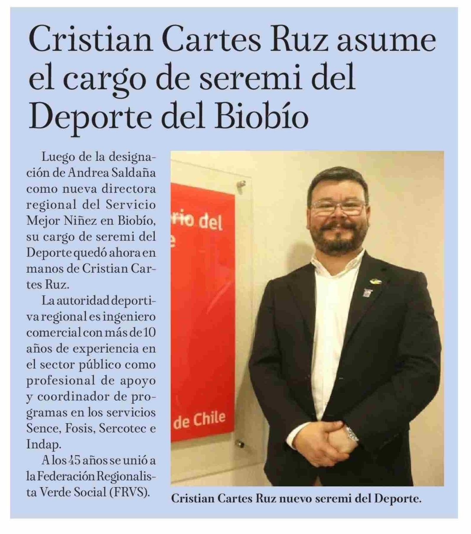 Cristian Cartes Ruz asume el cargo de seremi del Deporte del Biobío 30-08-2023 La Tribuna |