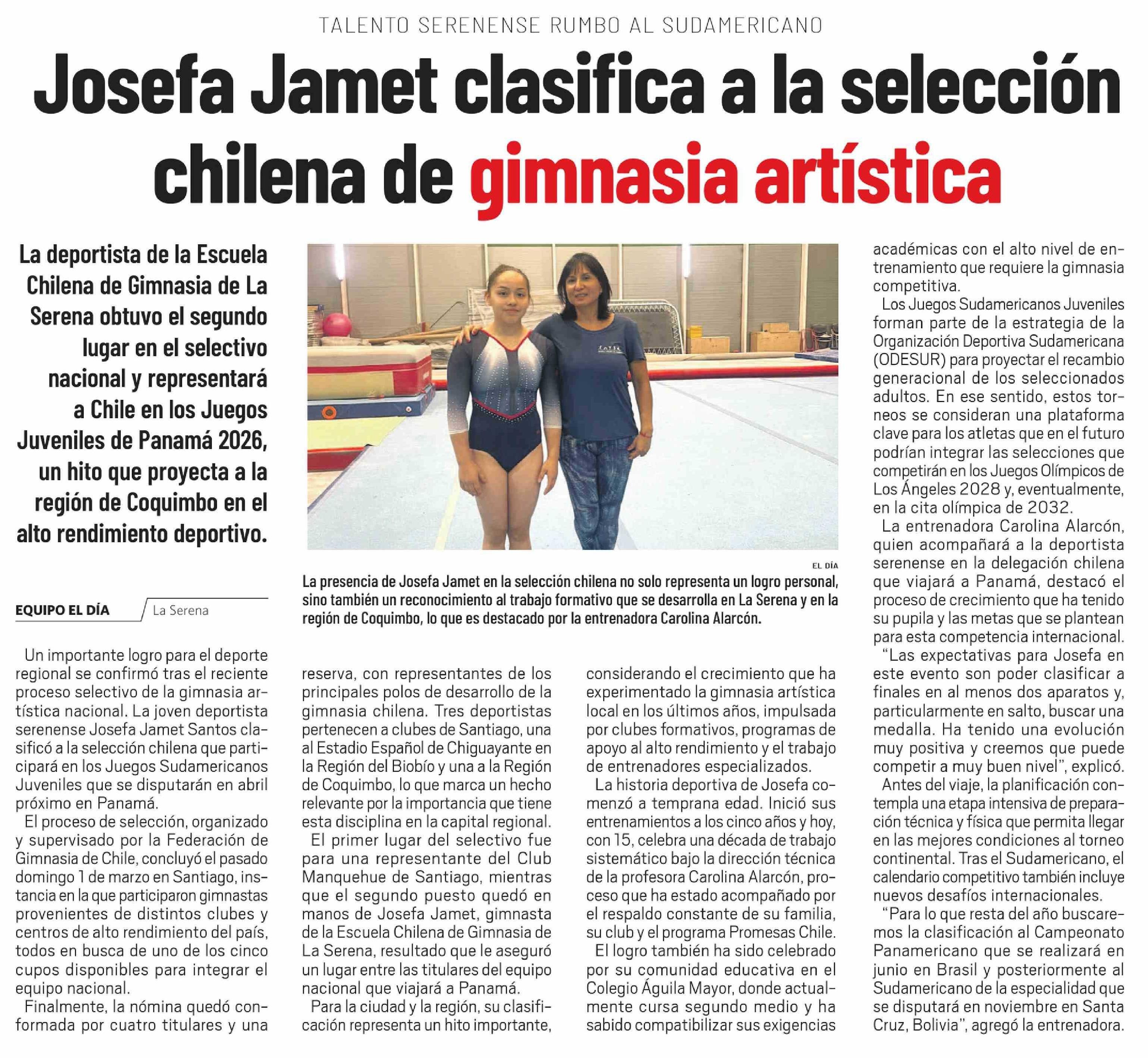 Título: Josefa Jamet clasifica a la selección chilena de gimnasia artística