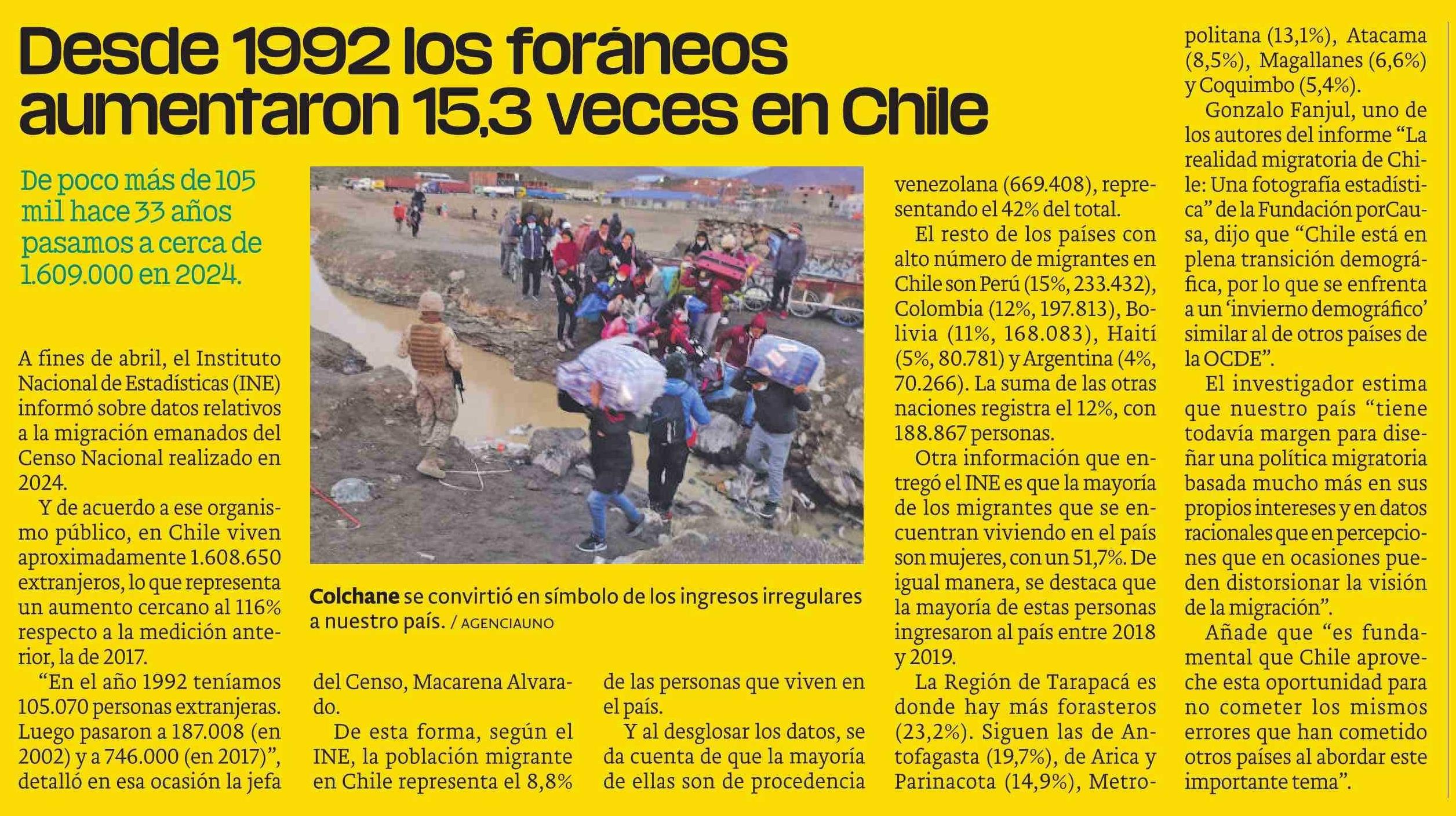 Desde 1992 los foráneos aumentaron 15,3 veces en Chile 04-06-2025 Publimetro |