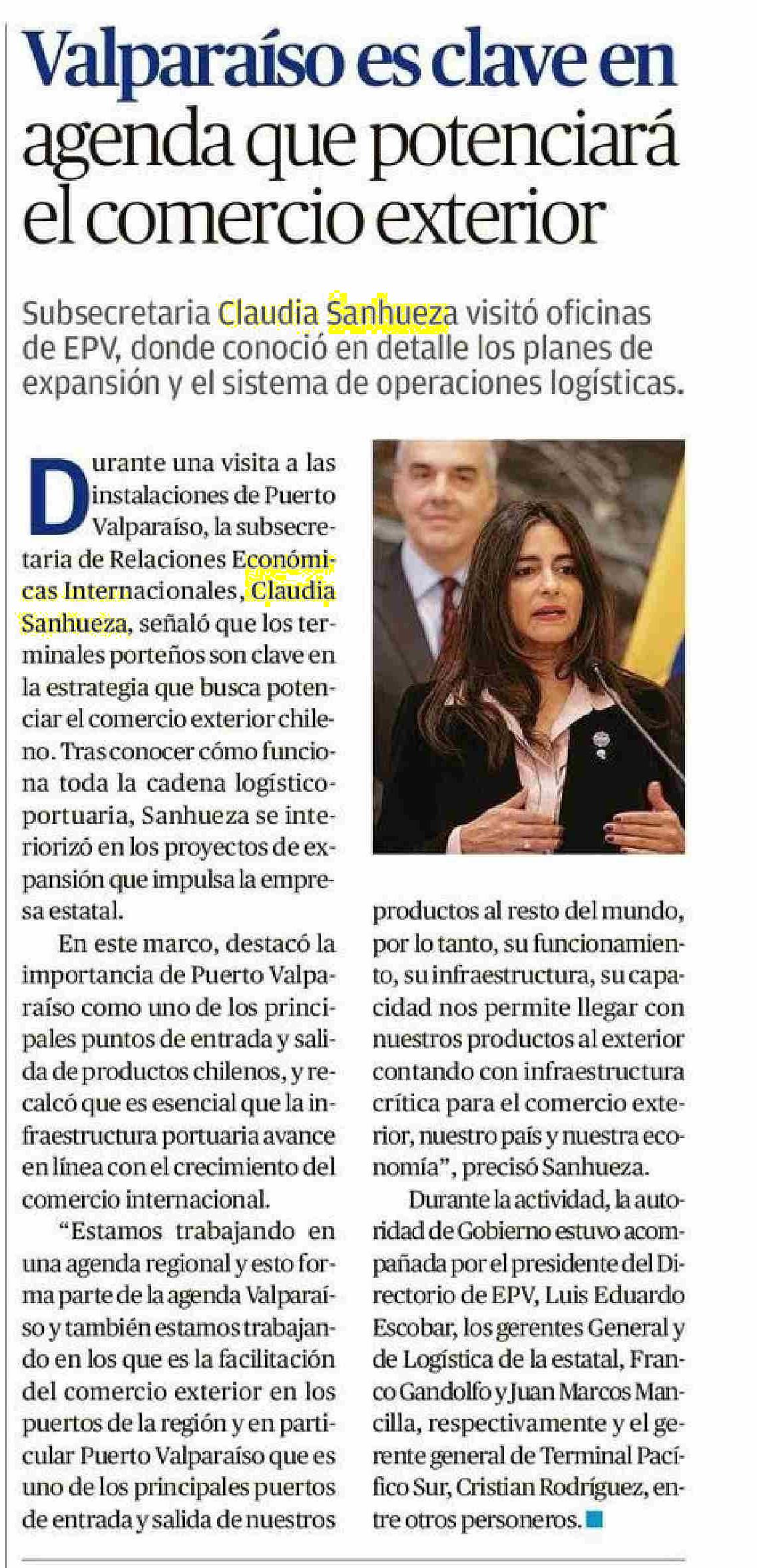 Título: Valparaíso es clave en agenda que potenciará el comercio exterior