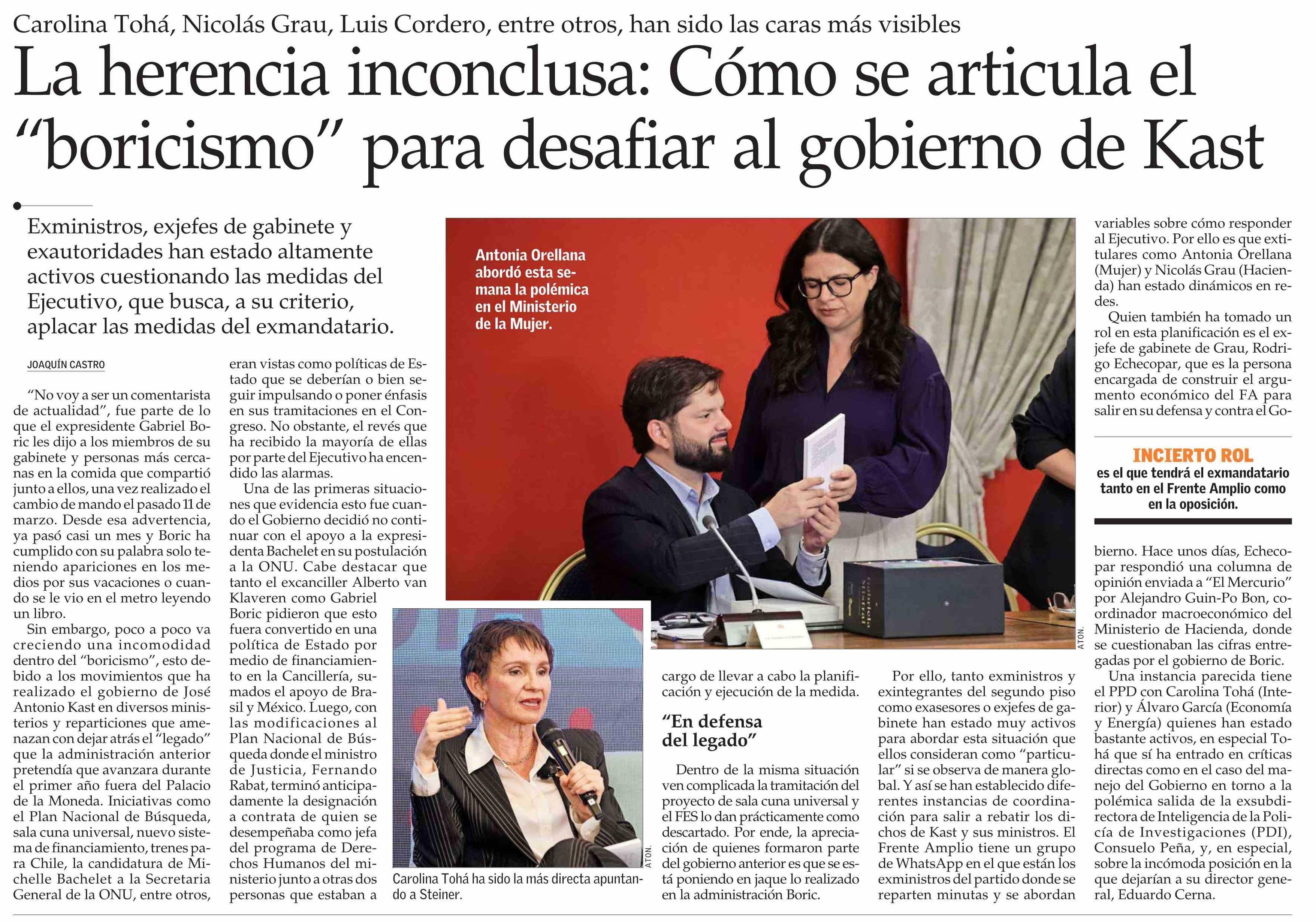 La herencia inconclusa: Cómo se articula el “boricismo” para desafiar al gobierno de Kast 04-04-2026 El Mercurio |