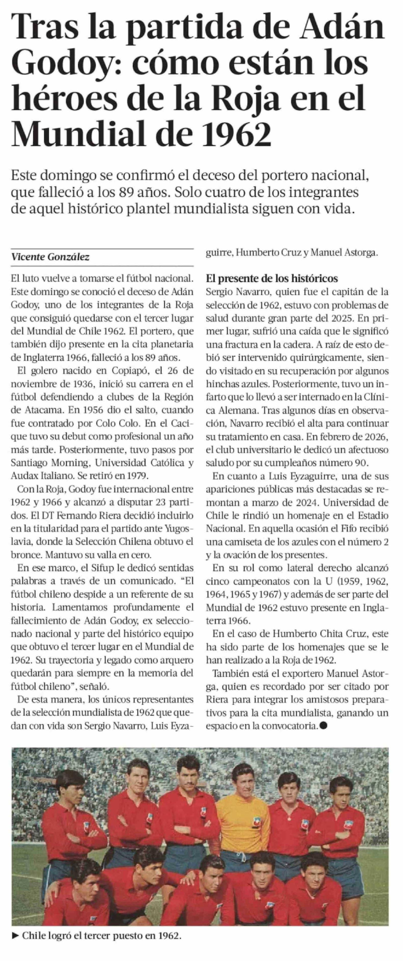 Título: Tras la partida de Adán Godoy: cómo están los héroes de la Roja en el Mundial de 1962