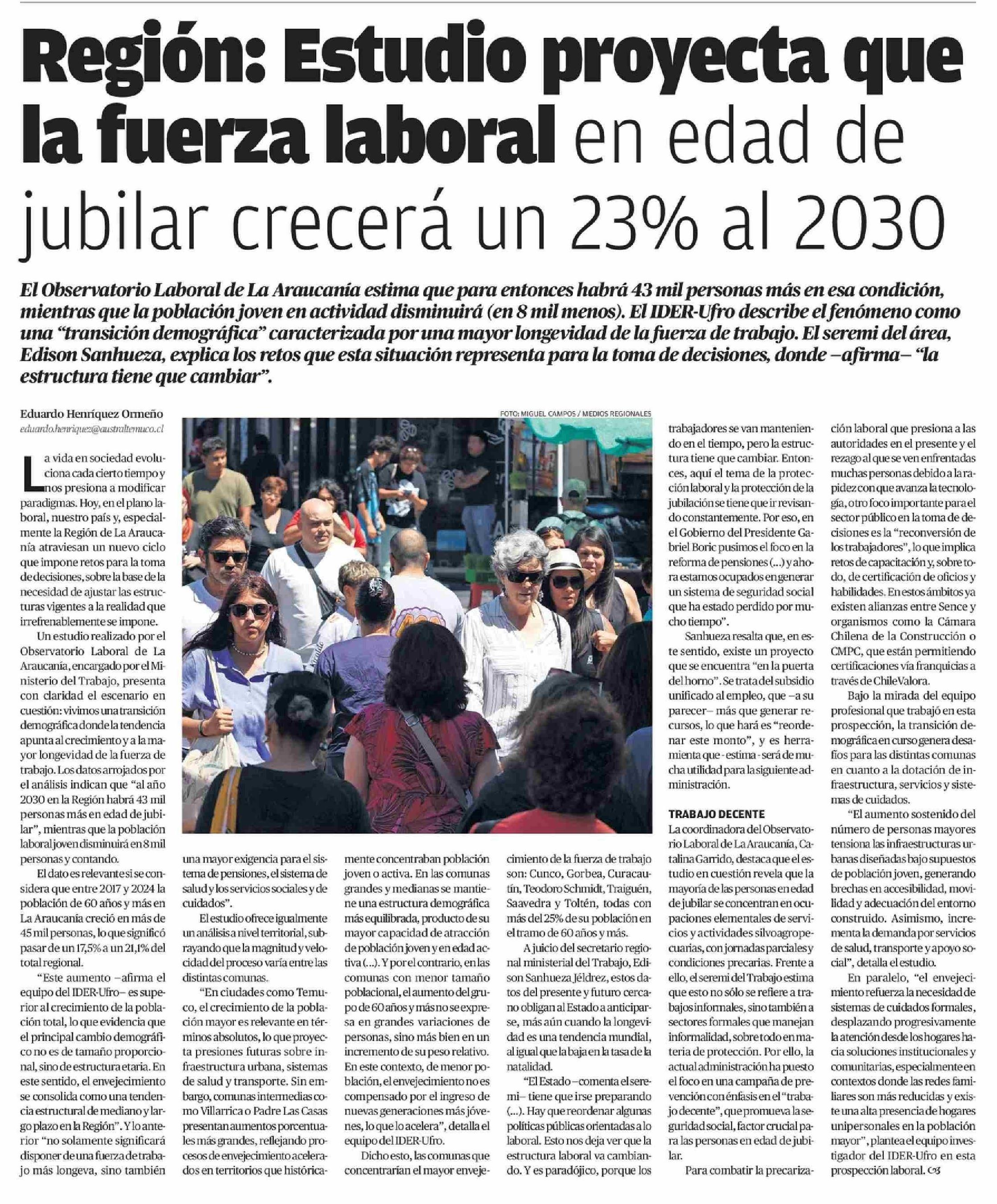 Título: Región: Estudio proyecta que la fuerza laboral en edad de jubilar crecerá un 23% al 2030