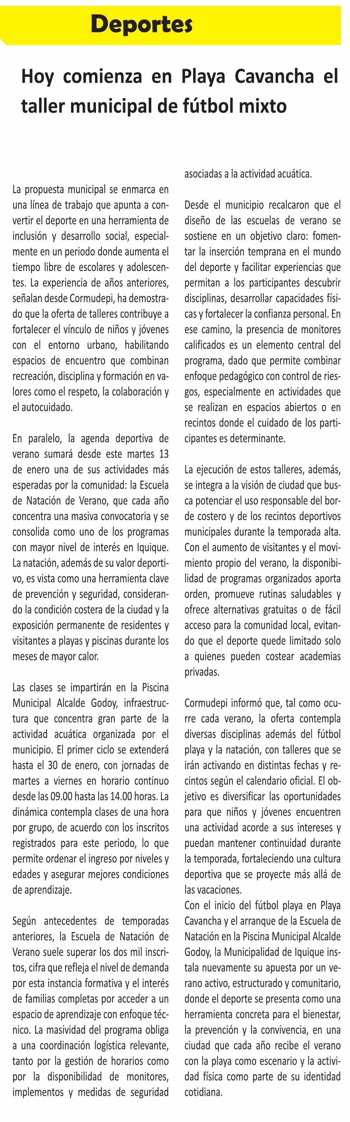 Fecha: 12-01-2026 Sector: Noticia general Región: Región de Tarapacá