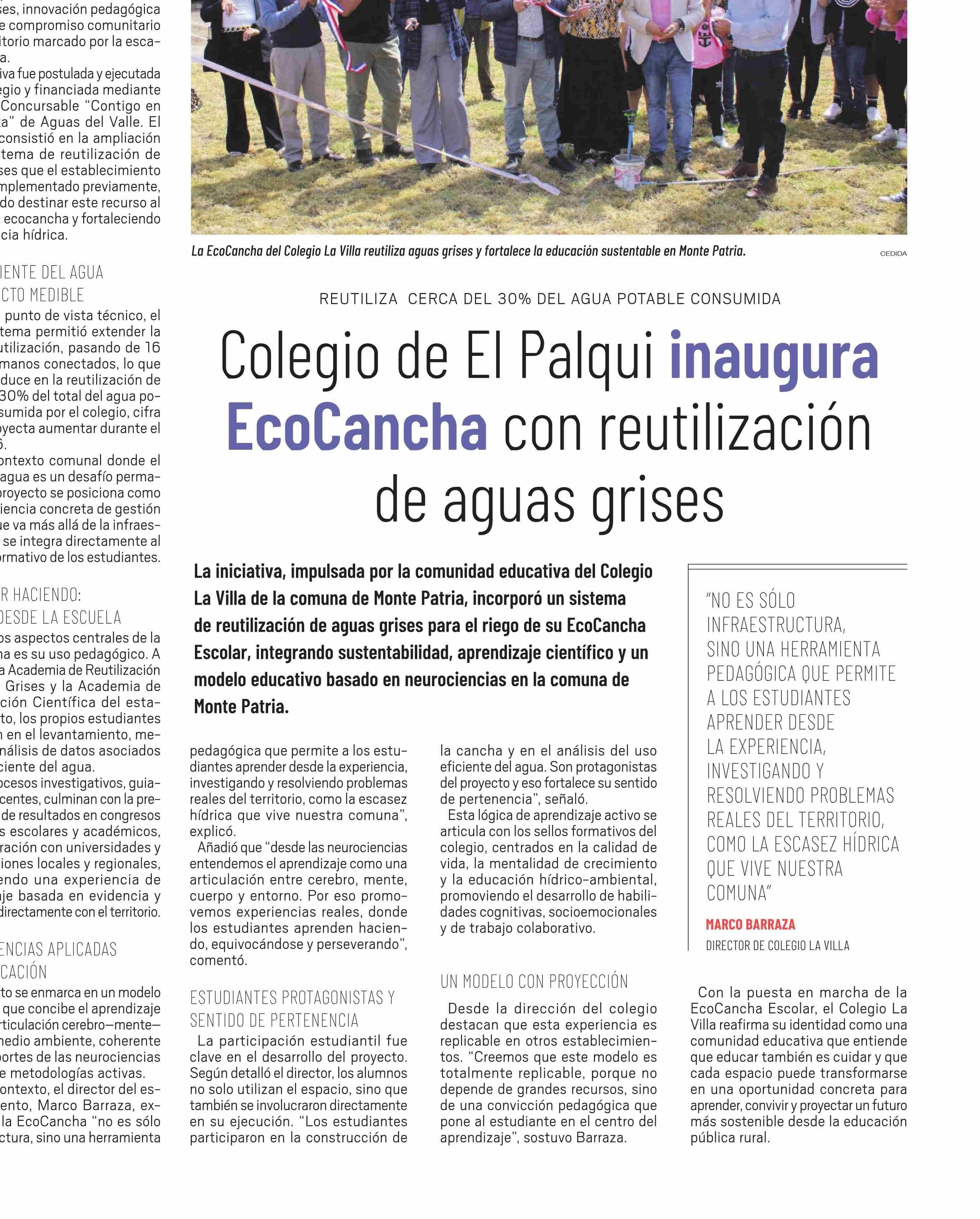 | Título: | Colegio de El Palqui inaugura EcoCancha con reutilización de aguas grises |
