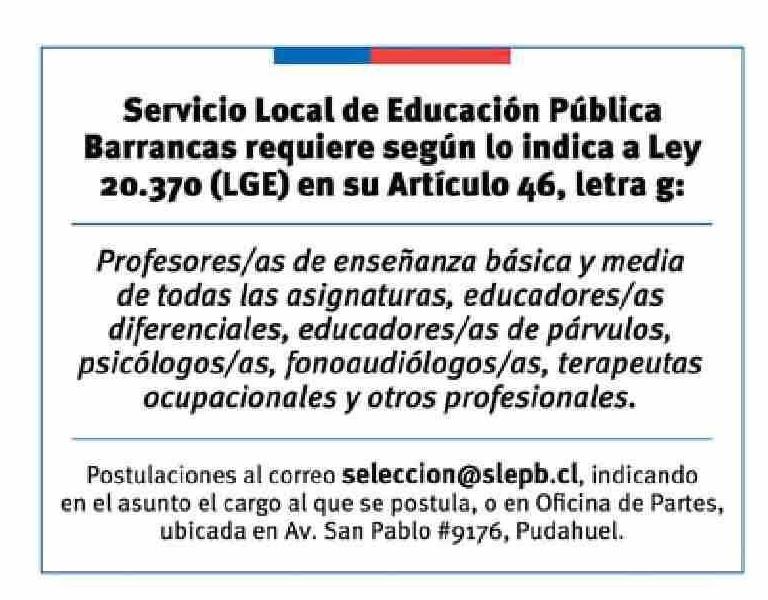 Título: Aviso Licitaciones: Servicio Local de Educación Pública Barrancas