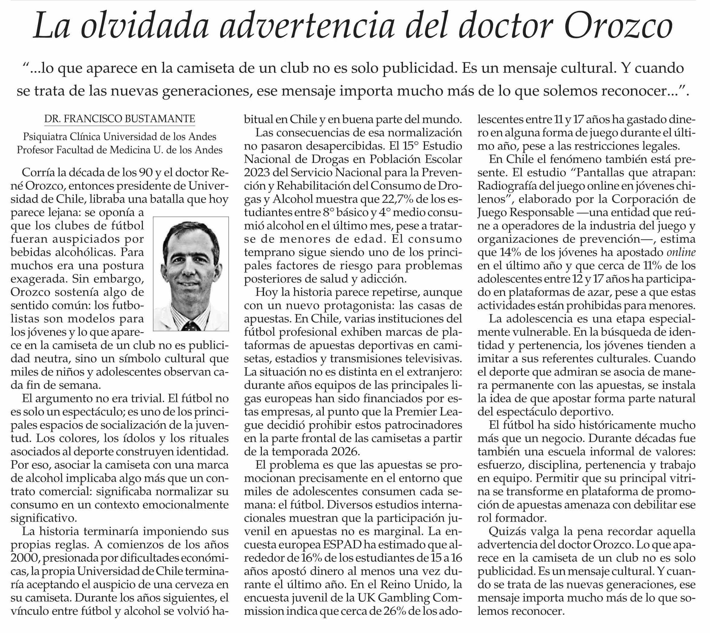Título: Columnas de Opinión: La olvidada advertencia del doctor Orozco
