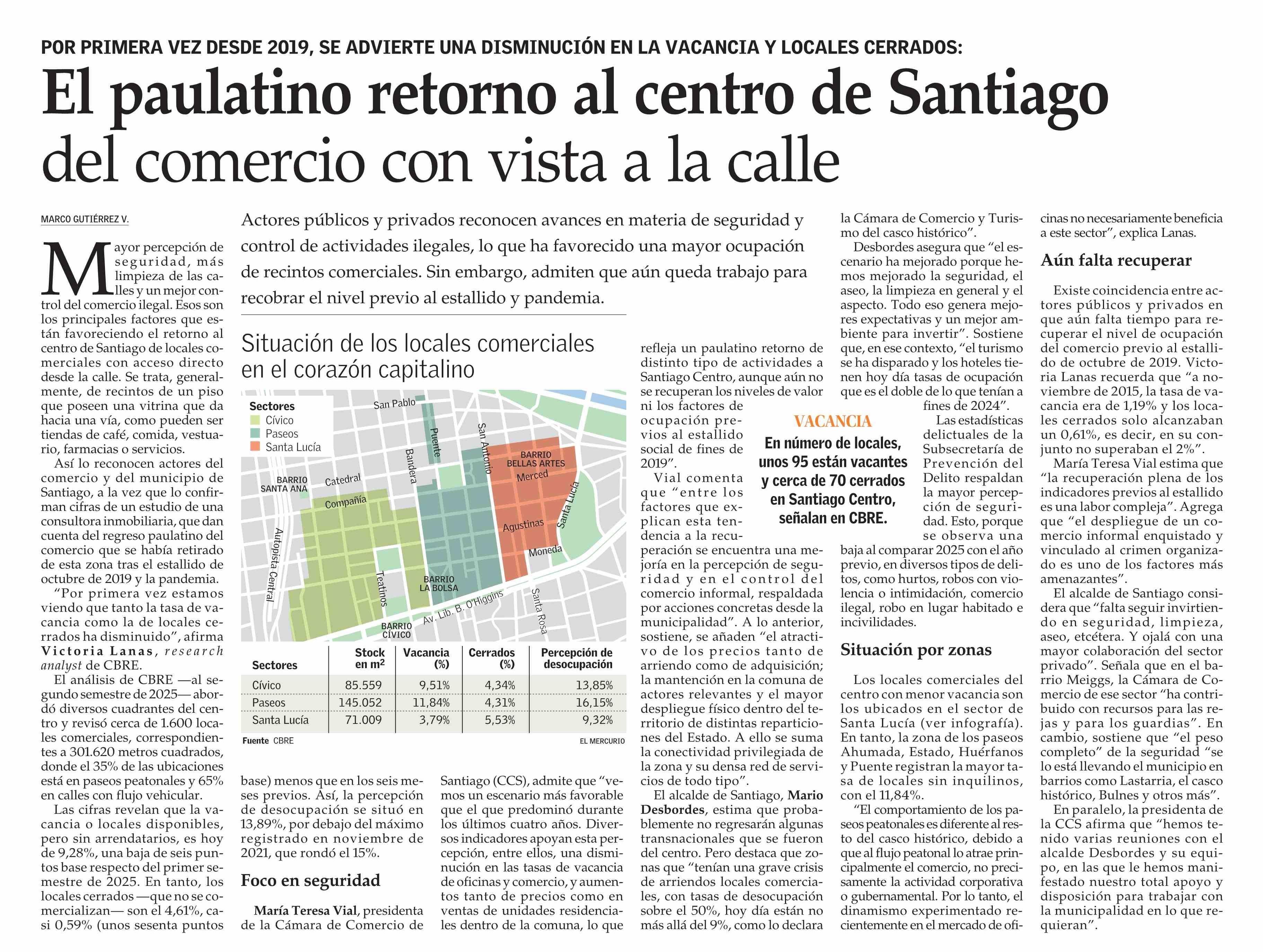 El paulatino retorno al centro de Santiago del comercio con vista a la calle 31-01-2026 El Mercurio |