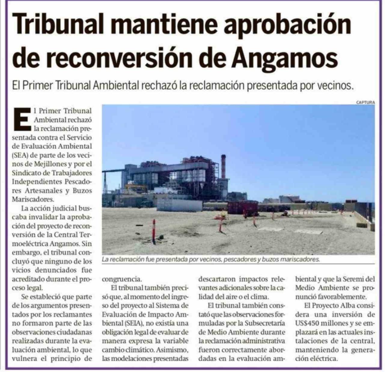 Título: Tribunal mantiene aprobación de reconversión de Angamos