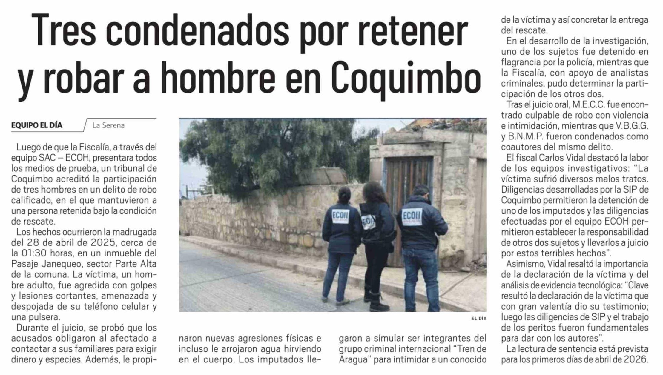 Título: Tres condenados por retener y robar a hombre en Coquimbo