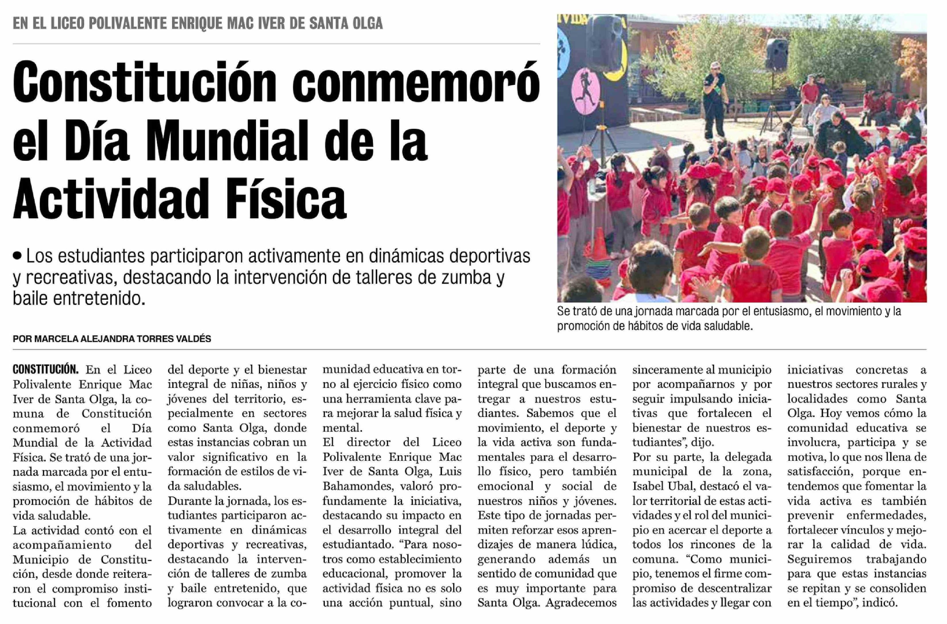 Constitución conmemoró el Día Mundial de la Actividad Física 10-04-2026 La Prensa de Curicó |