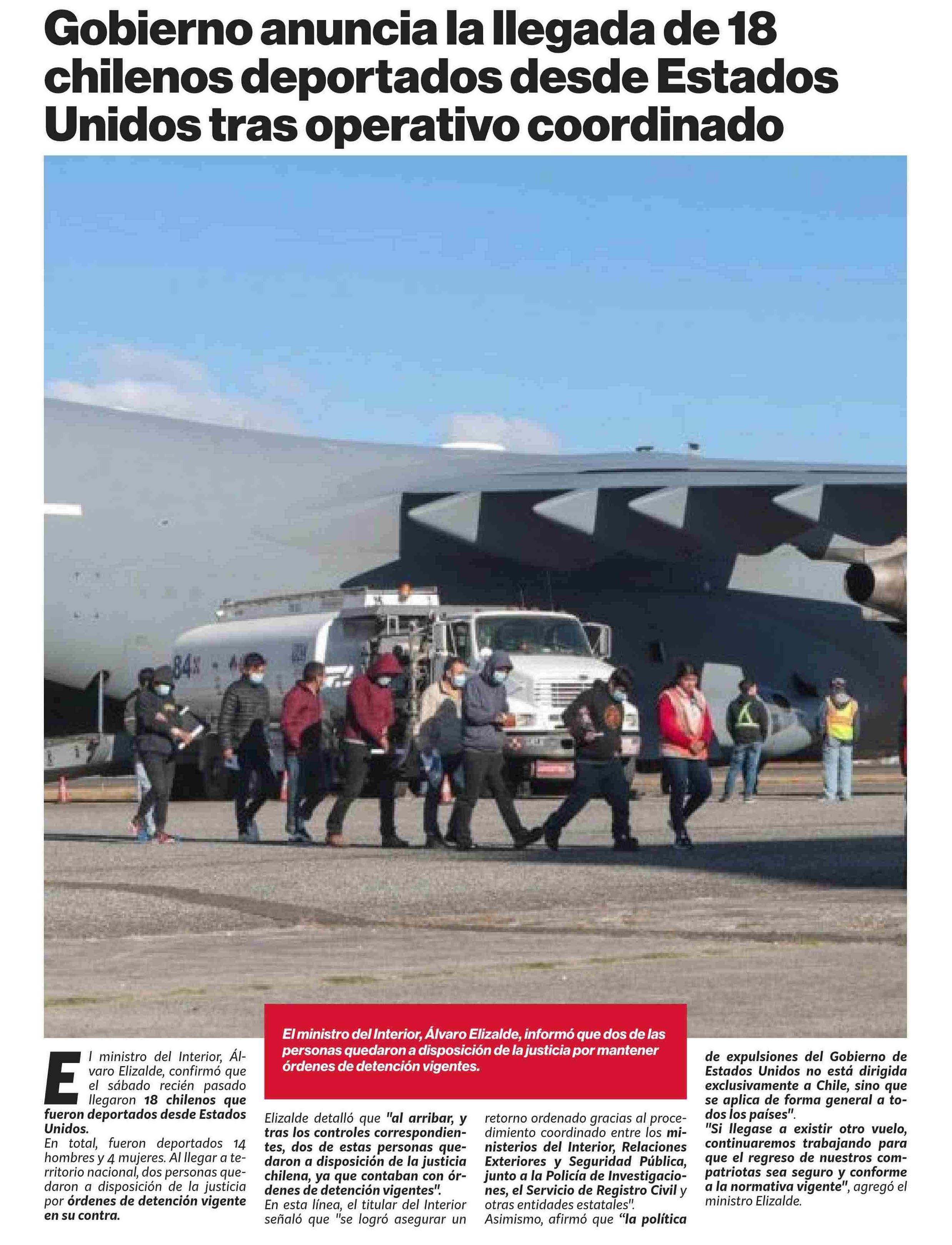 Gobierno anuncia la llegada de 18 chilenos deportados desde Estados Unidos tras operativo coordinado 04-02-2026 Puranoticia.cl |