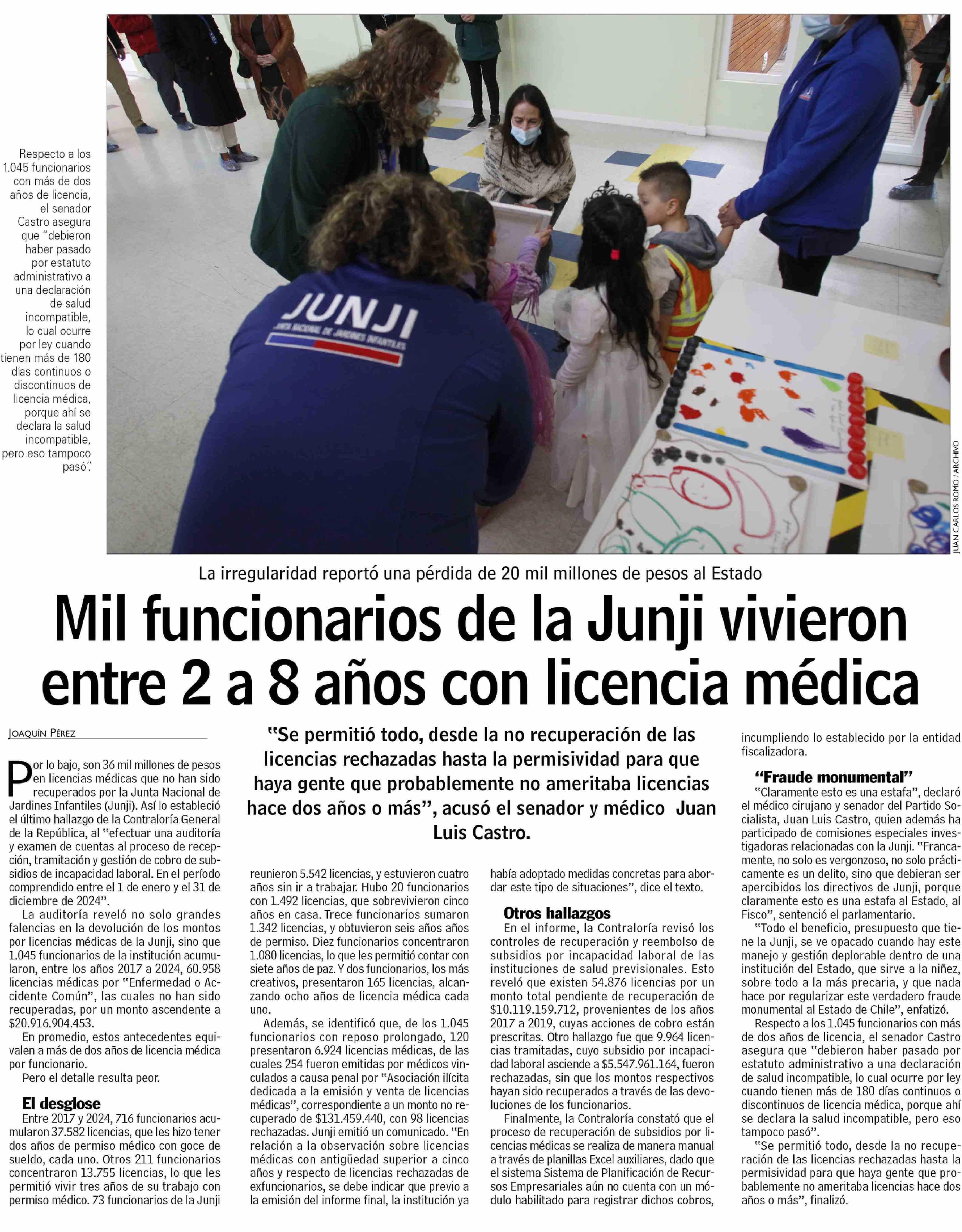 Mil funcionarios de la Junji vivieron entre 2 a 8 años con licencia médica 10-02-2026 Las Últimas Noticias |