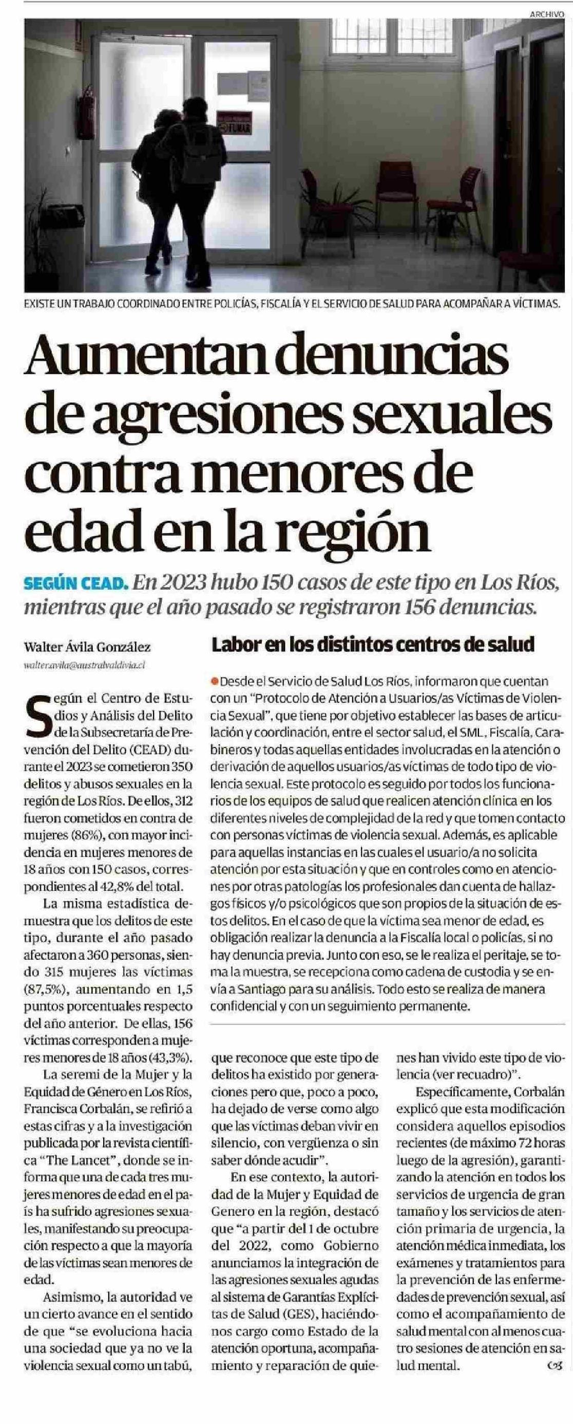 Título: Aumentan denuncias de agresiones sexuales contra menores de edad en la región