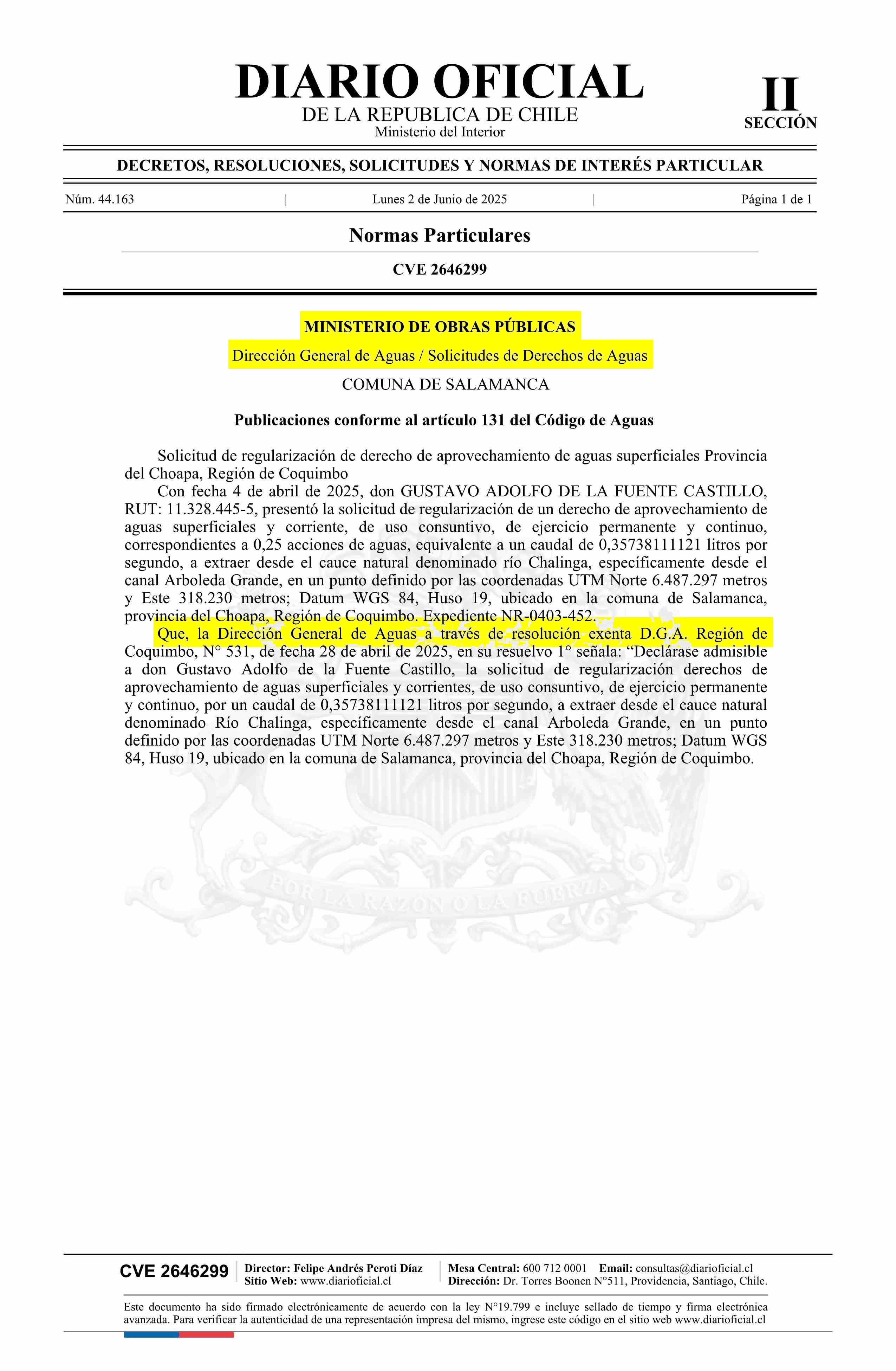 Solicitud De la Fuente Castillo Gustavo Adolfo 02-06-2025 Diario Oficial Edición Electrónica |