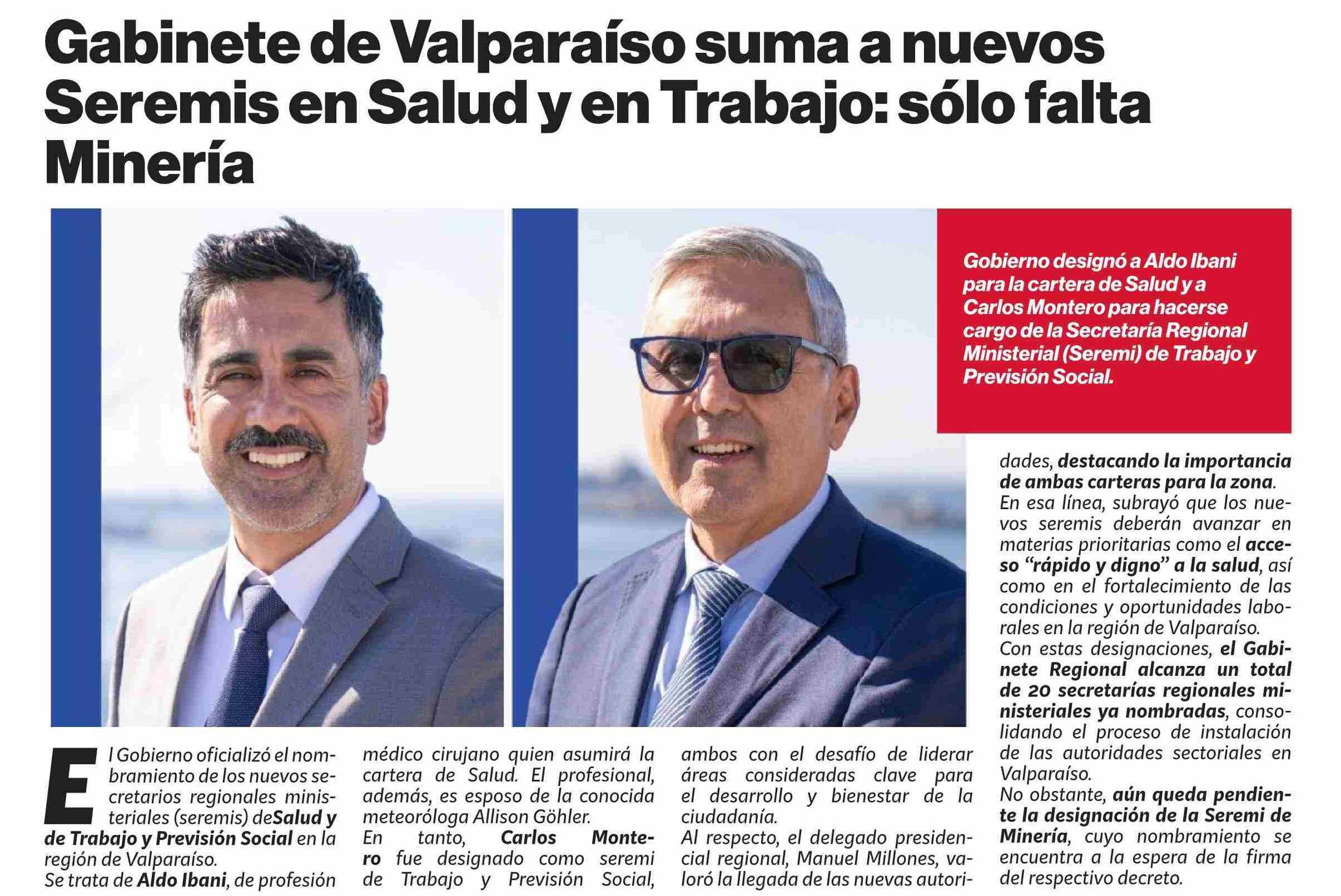 Título: Gabinete de Valparaíso suma a nuevos Seremis en Salud y en Trabajo: sólo falta Minería