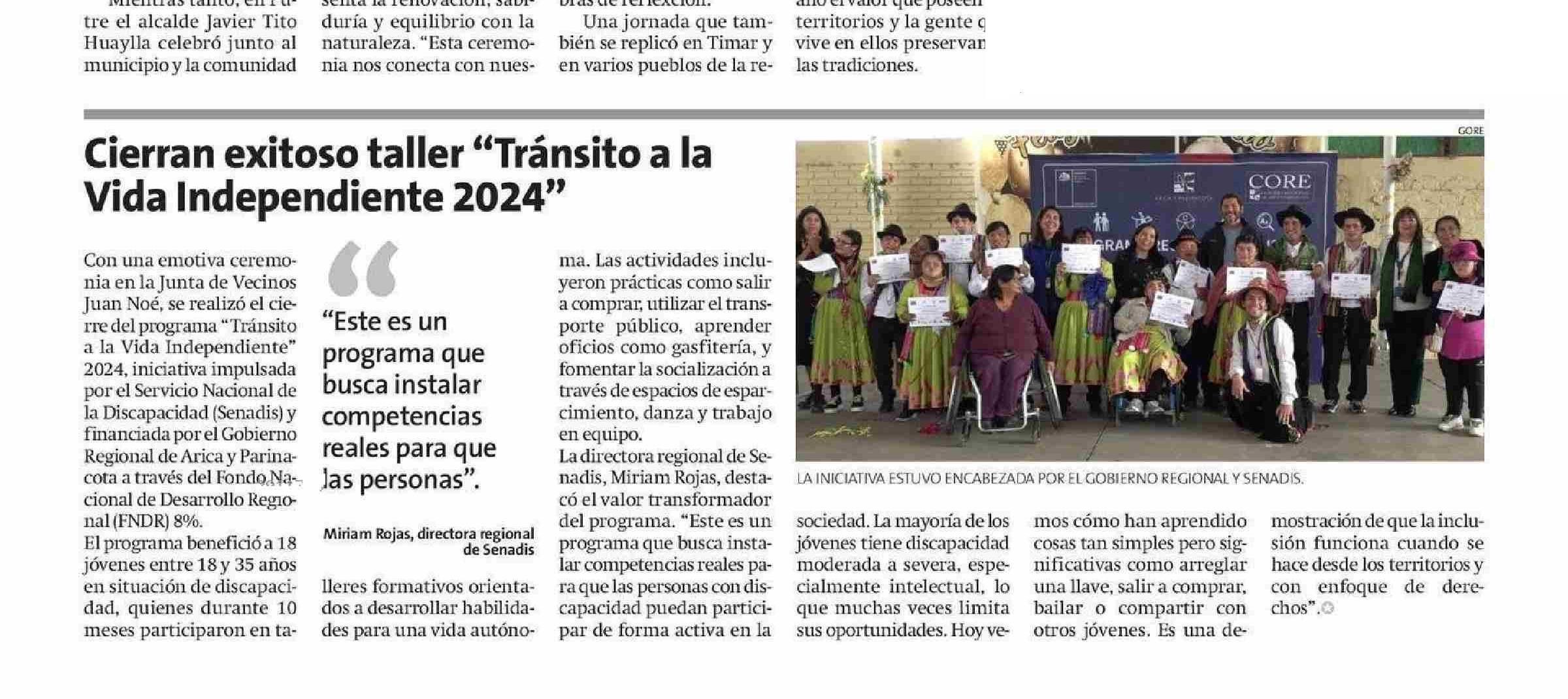 Cierran exitoso taller “Tránsito a la Vida Independiente 2024” 22-06-2025 La Estrella de Arica |