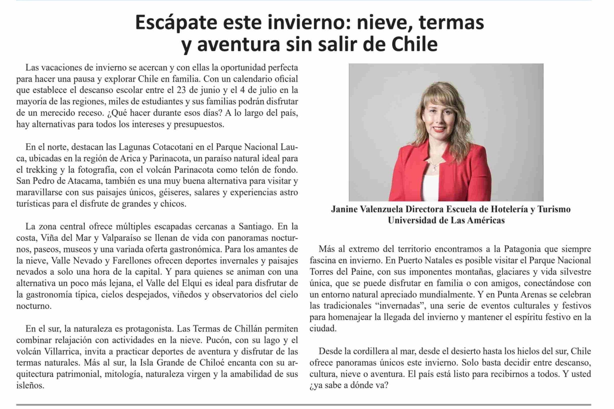 COLUMNAS DE OPINIÓN: Escápate este invierno: nieve, termas y aventura sin salir de Chile 11-06-2025 El Heraldo |