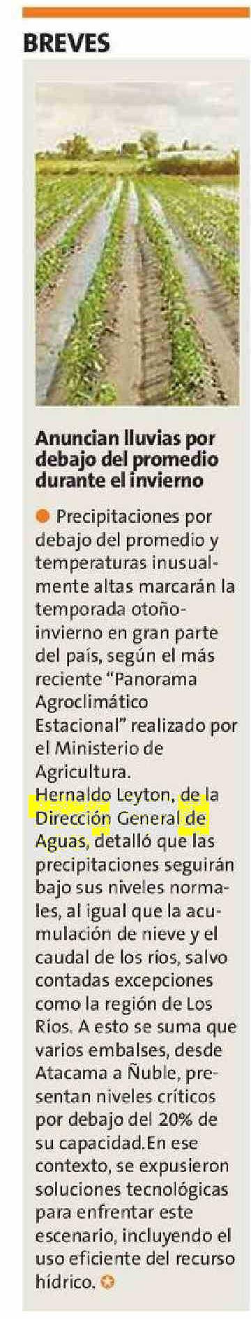 Anuncian lluvias por debajo del promedio durante el invierno 06-06-2025 La Estrella de Quillota |