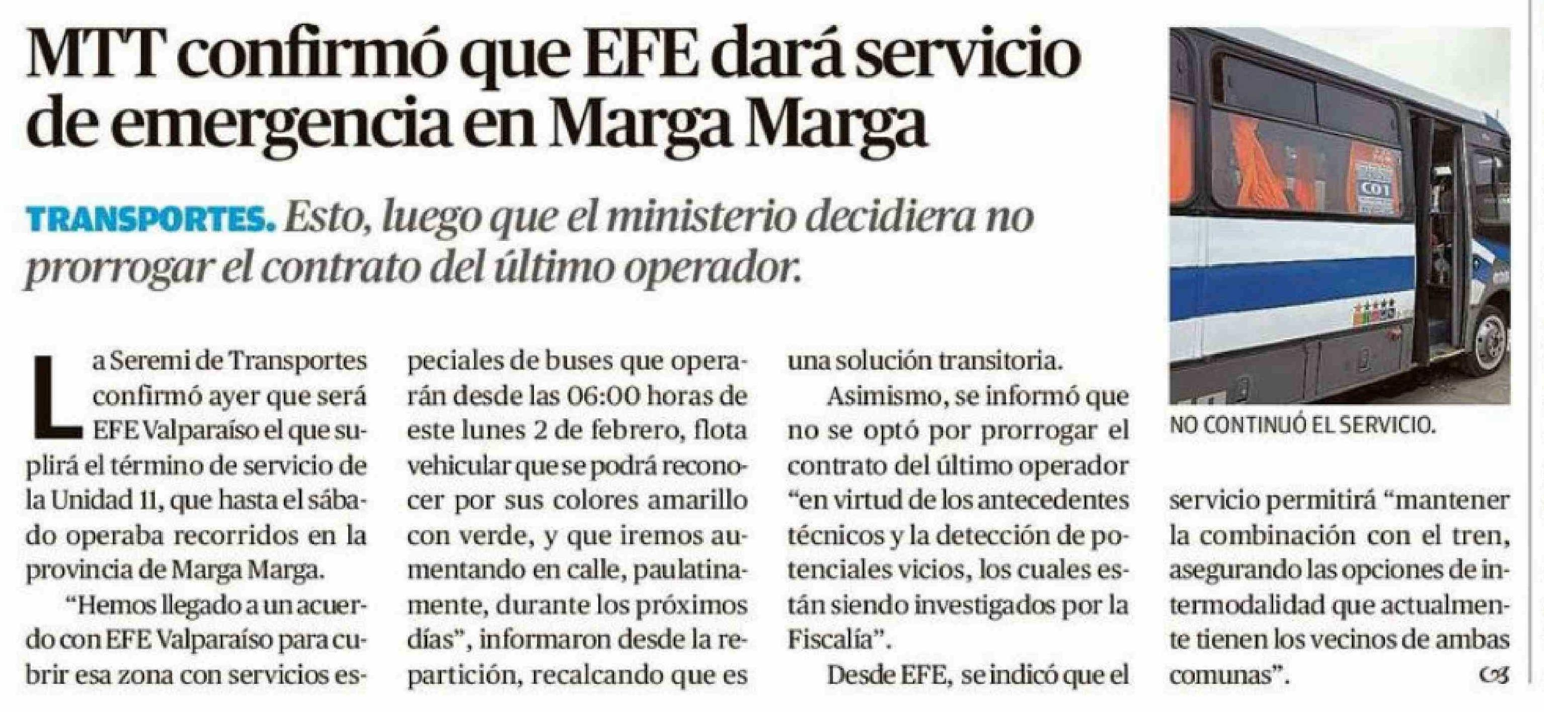 MTT confirmó que EFE dará servicio de emergencia en Marga Marga 02-02-2026 El Mercurio de Valparaíso |