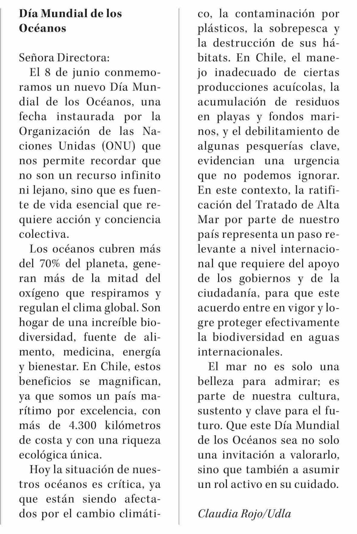 CARTAS: Día Mundial de los Océanos 08-06-2025 Diario Concepción |