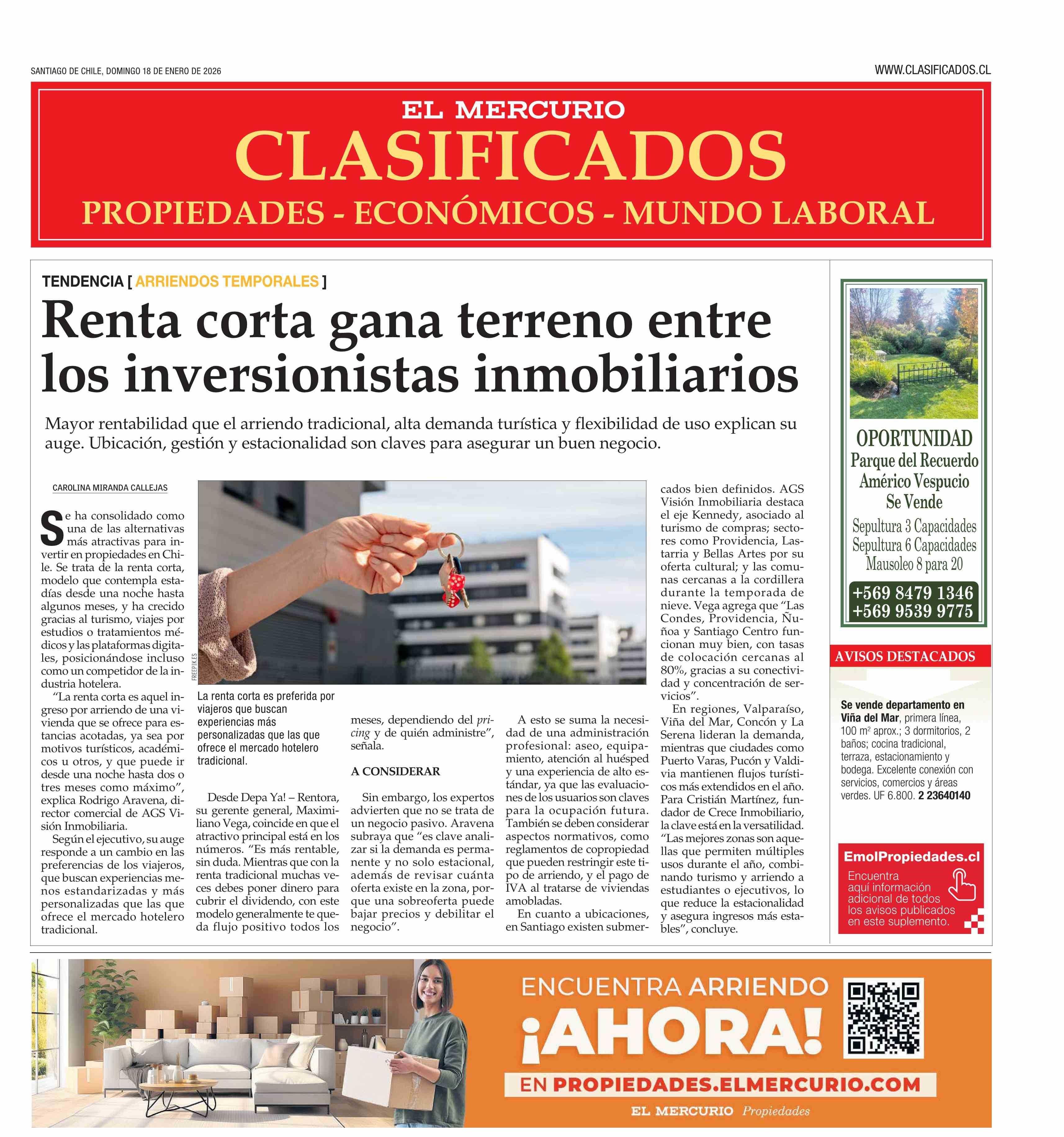 PORTADA EL MERCURIO (PROPIEDADES) CHILE 18-01-2026 El Mercurio |