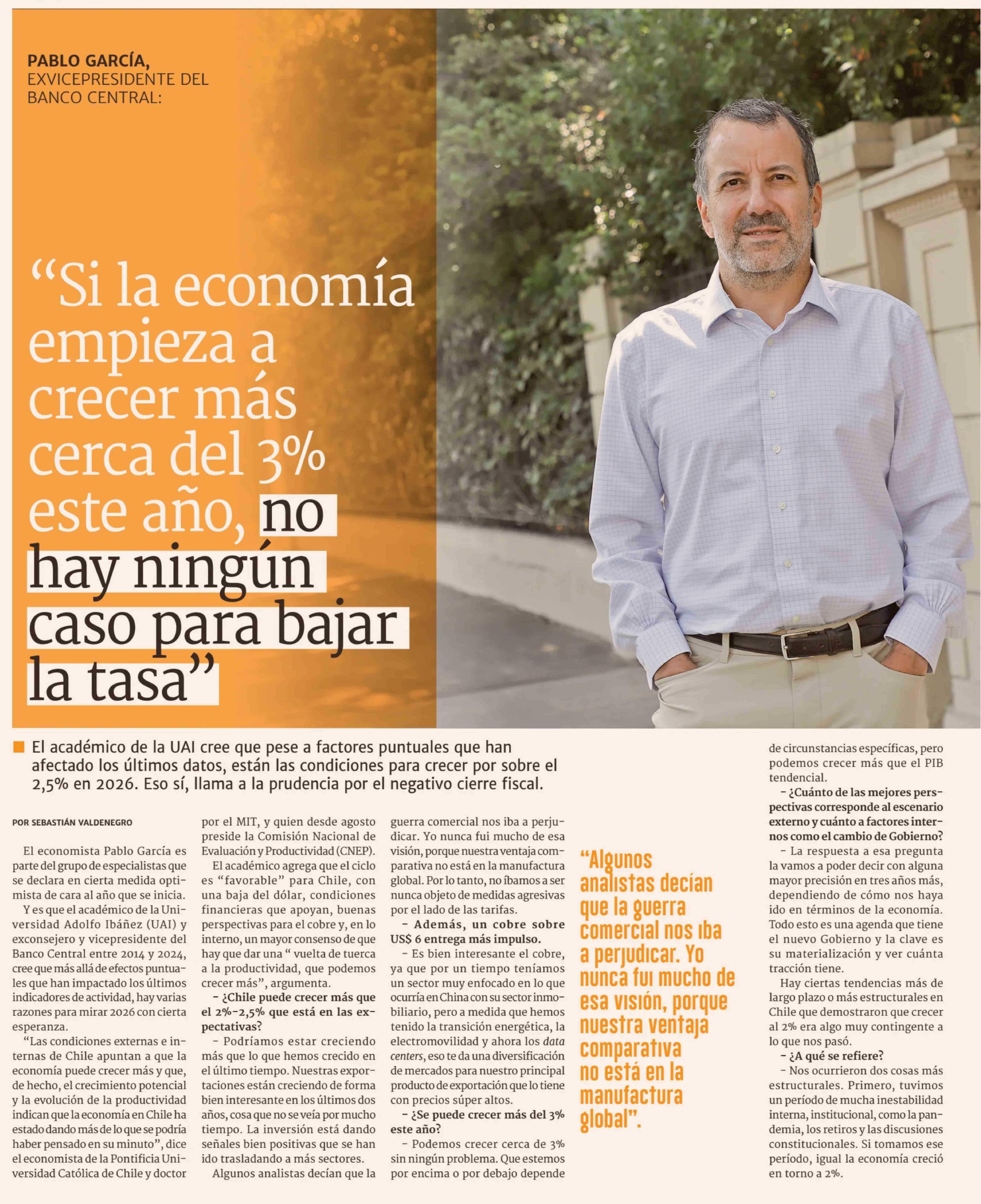 Título: "Si la economía empieza a crecer más cerca del 3% este año, no hay ningún caso para bajar la tasa"