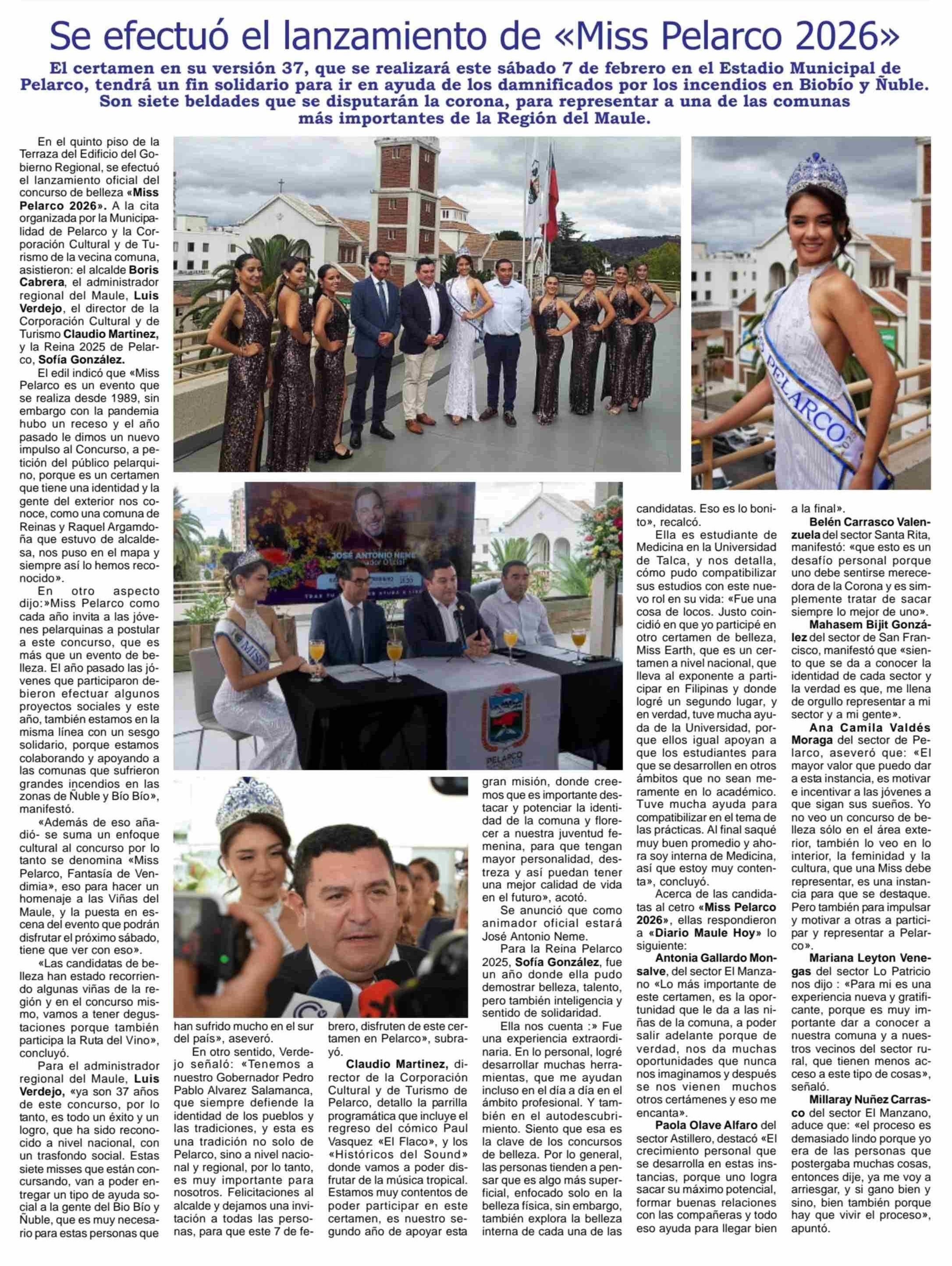Se efectuó el lanzamiento de «Miss Pelarco 2026» 04-02-2026 Maule Hoy |