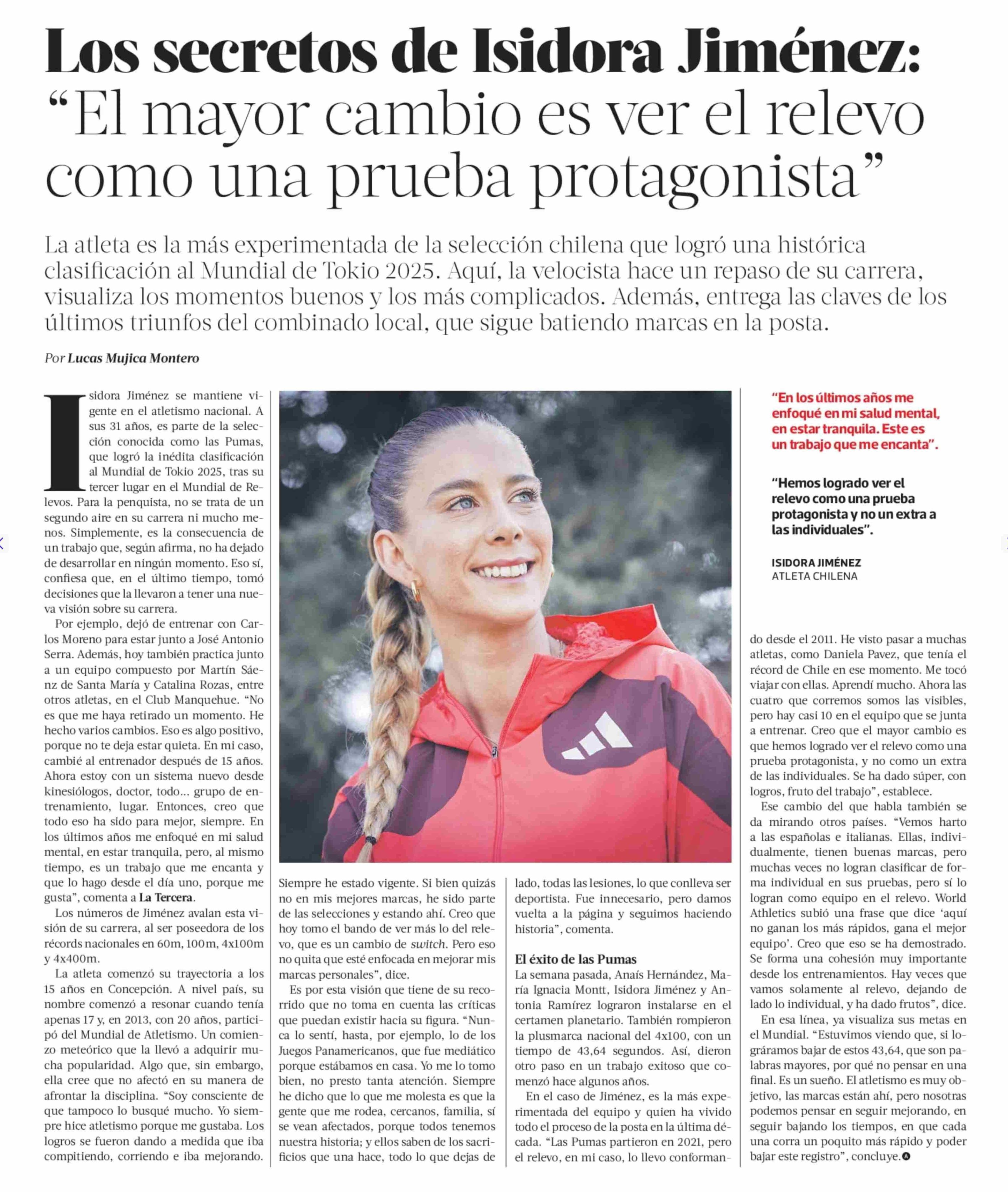 Título: Los secretos de Isidora Jiménez: “El mayor cambio es ver el relevo como una prueba protagonista”