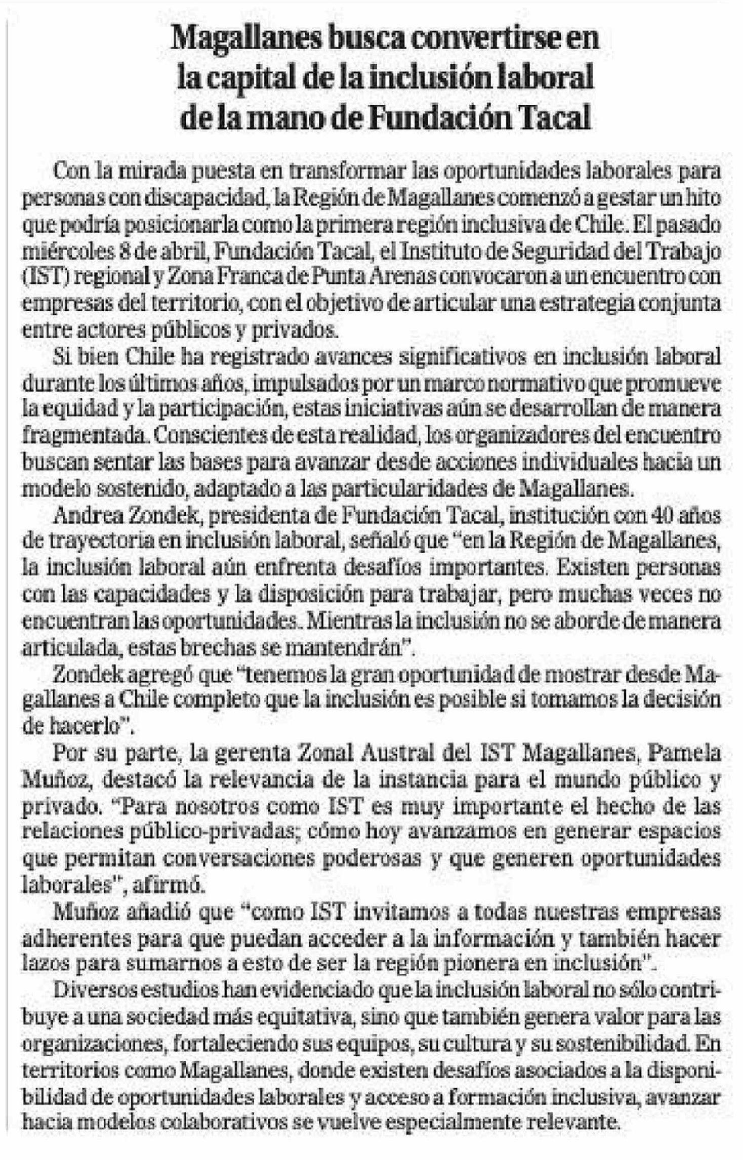 Título: Magallanes busca convertirse en la capital de la inclusión laboral de la mano de Fundación Tacal