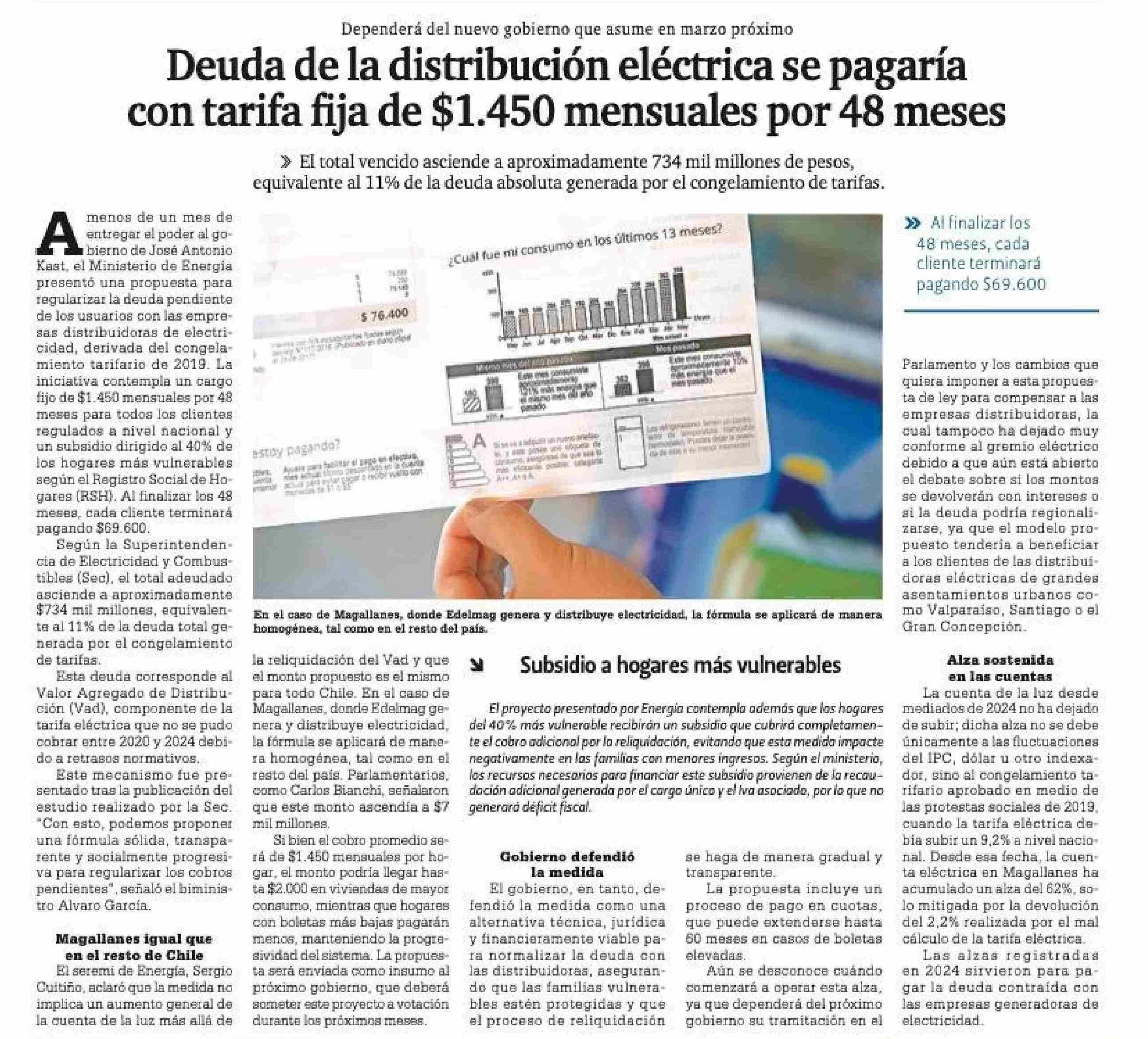 Título: Deuda de la distribución eléctrica se pagaría con tarifa fija de $1.450 mensuales por 48 meses