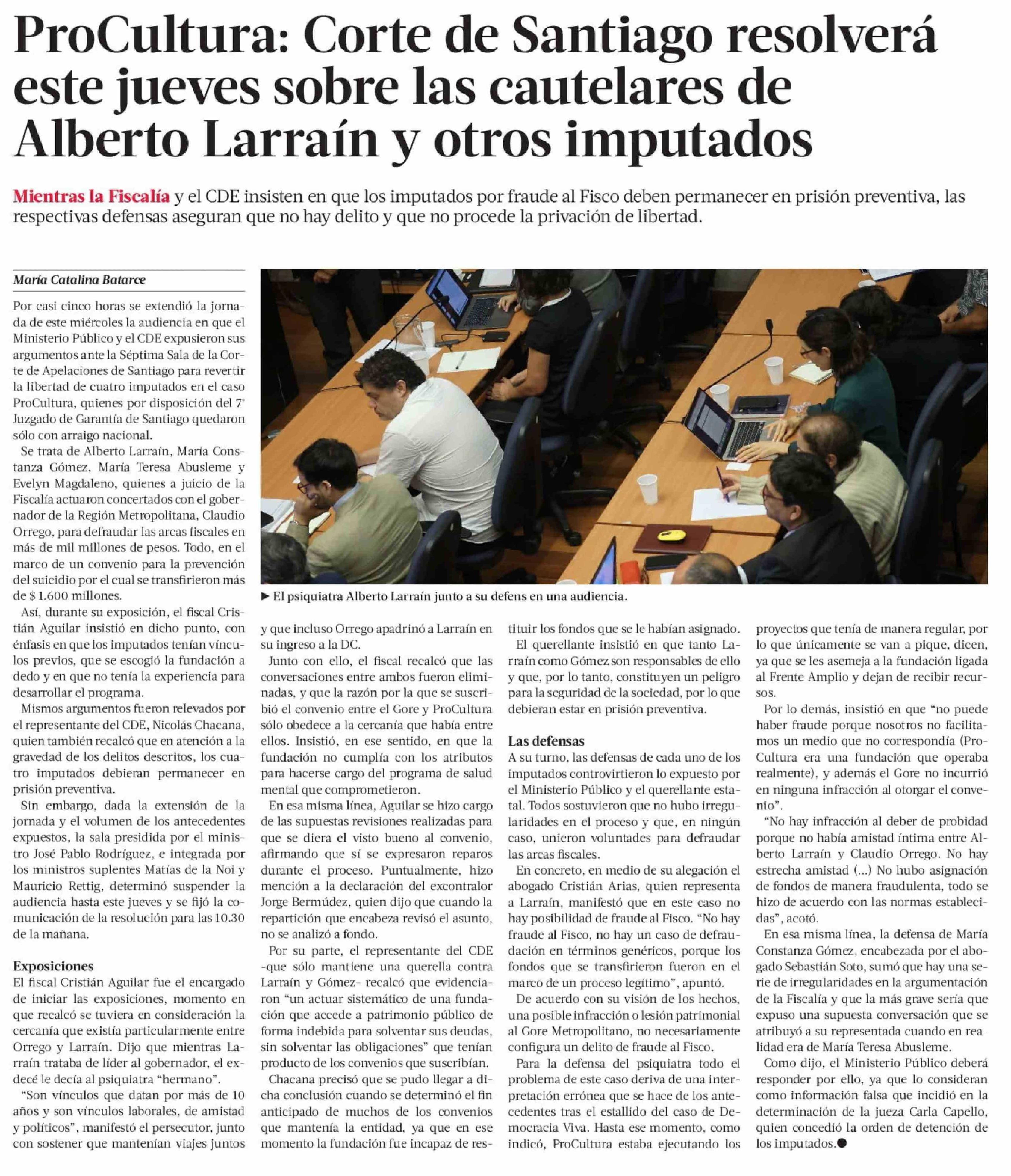 | Título: | ProCultura: Corte de Santiago resolverá este jueves sobre las cautelares de Alberto Larraín y otros imputados |