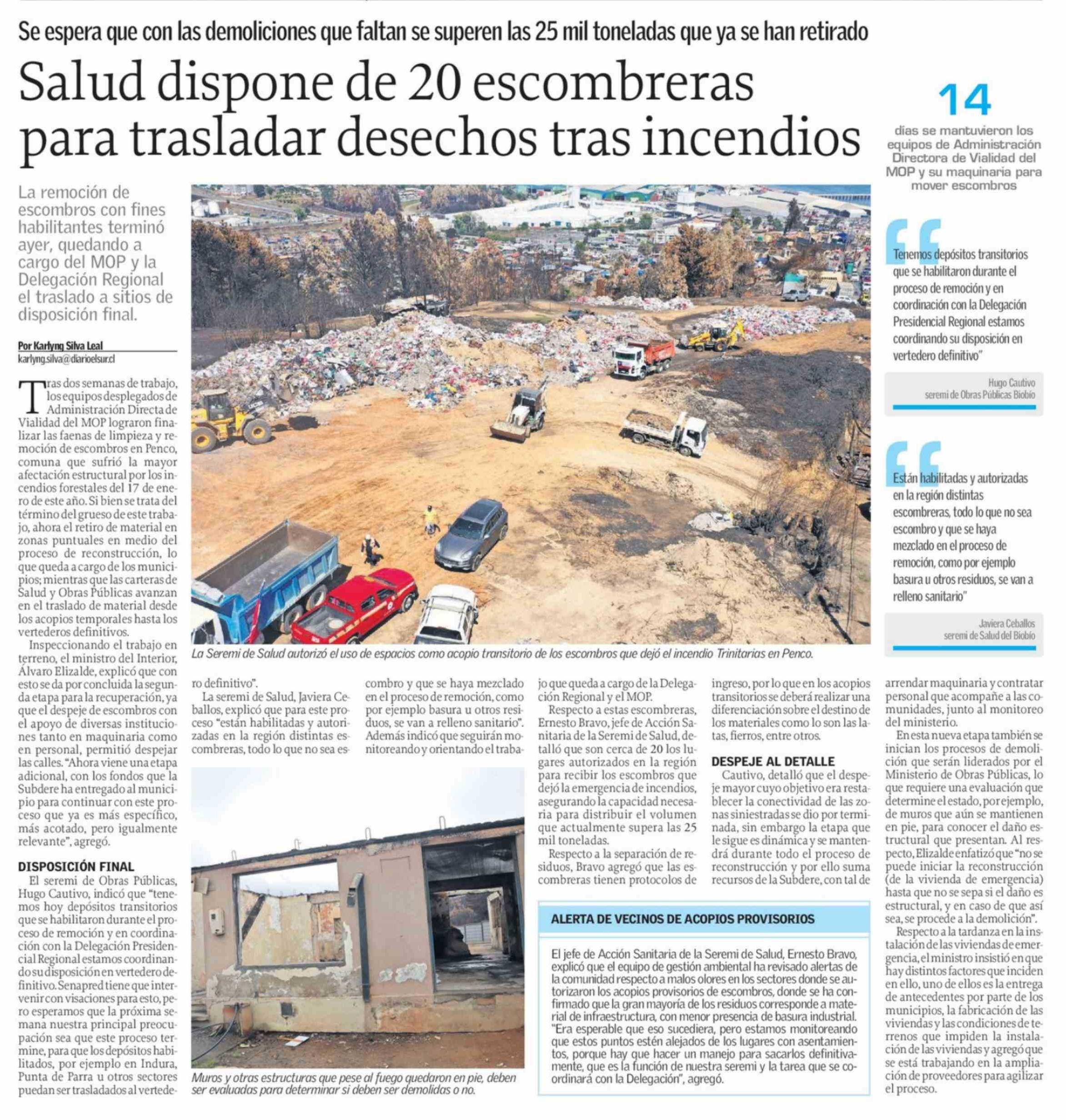 Salud dispone de 20 escombreras para trasladar desechos tras incendios 06-02-2026 El Sur |