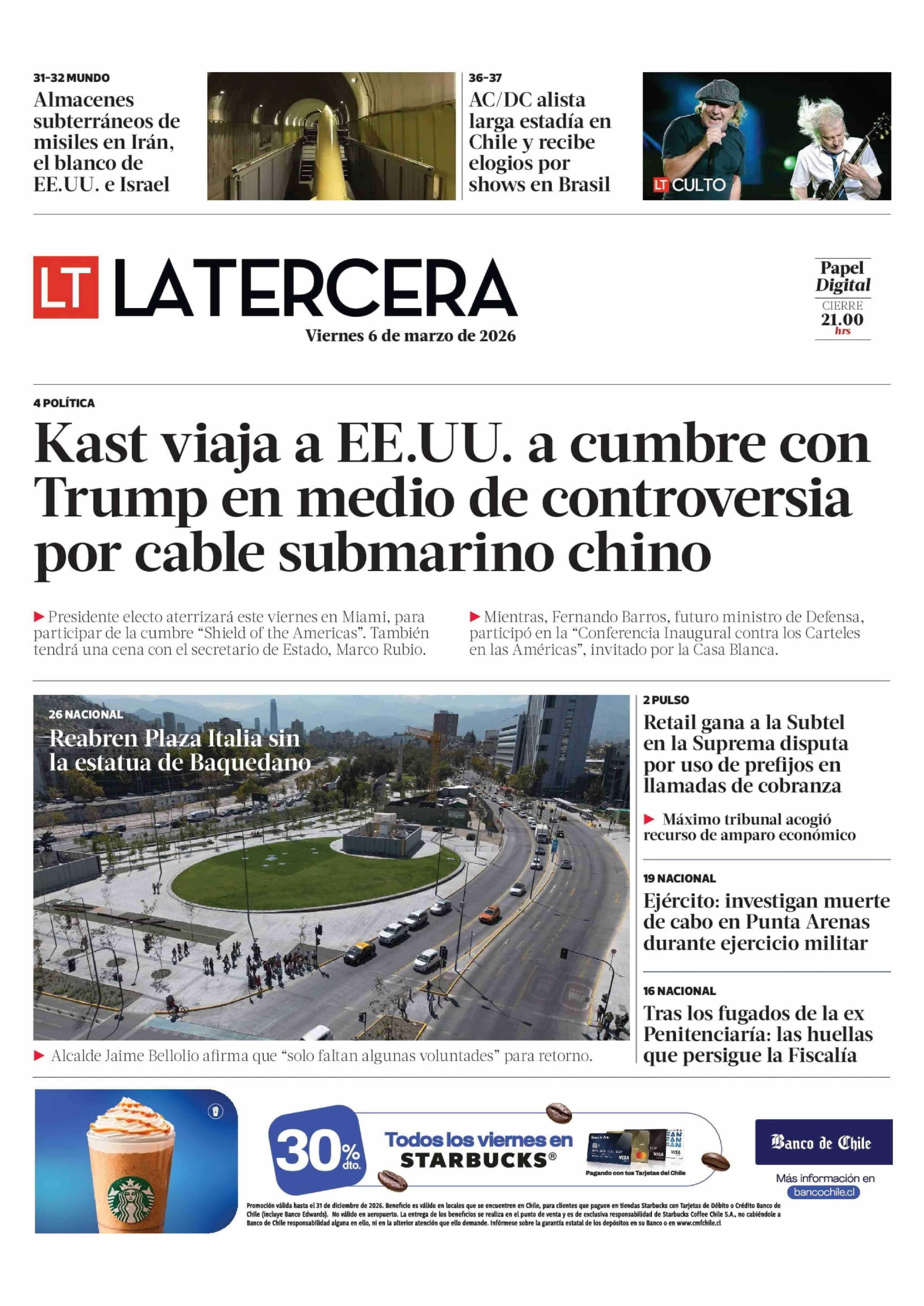 PORTADA LA TERCERA CHILE 06-03-2026 La Tercera |