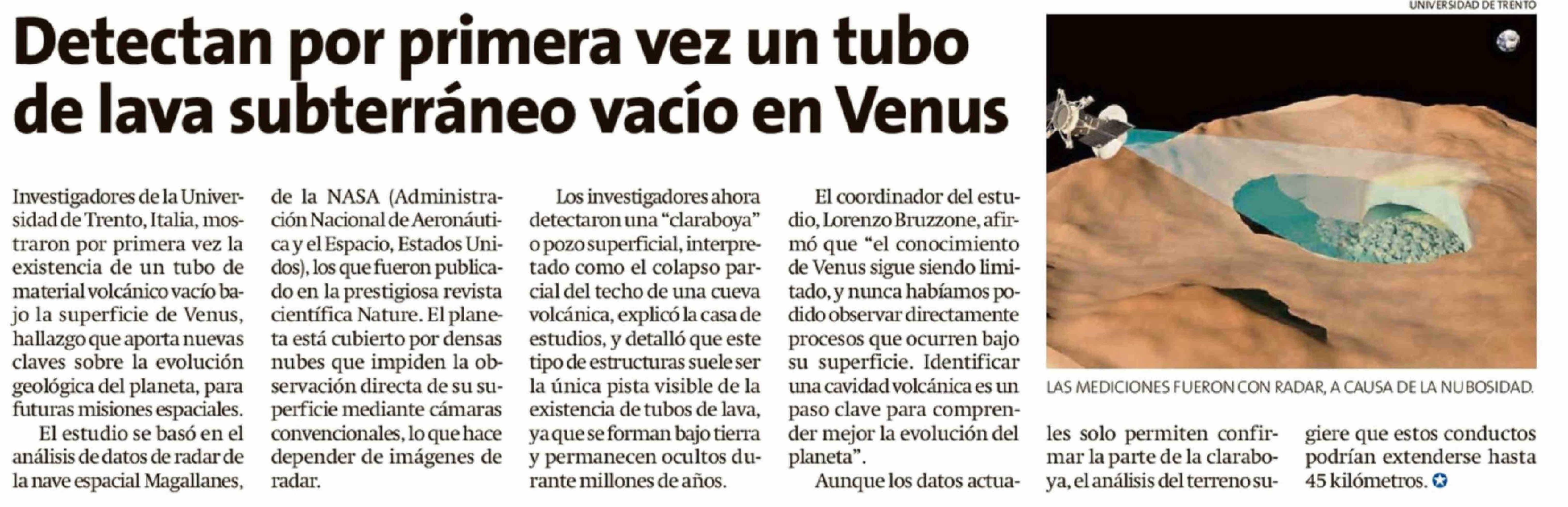 Detectan por primera vez un tubo de lava subterráneo vacío en Venus 11-02-2026 La Estrella de Chiloé |
