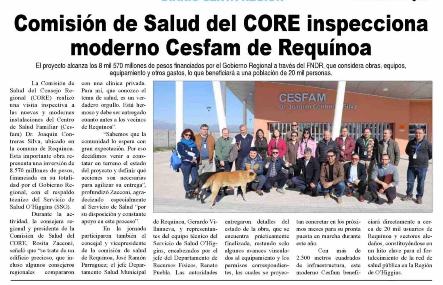Título: Comisión de Salud del CORE inspecciona moderno Cesfam de Requínoa